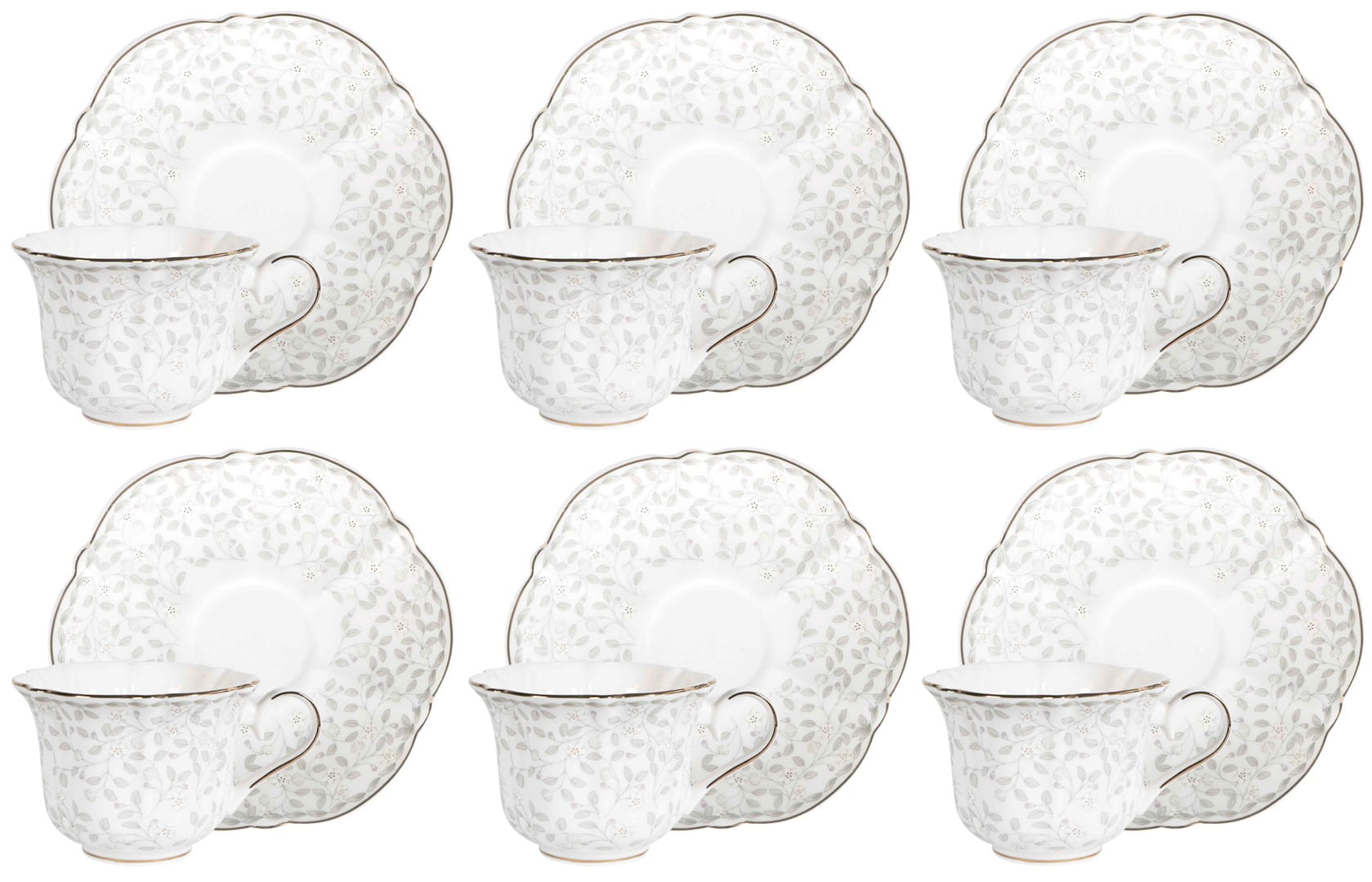 ANABEL KOMPLET FILIŻANEK 6+6 240 ml KAWA HERBATA PORCELANA