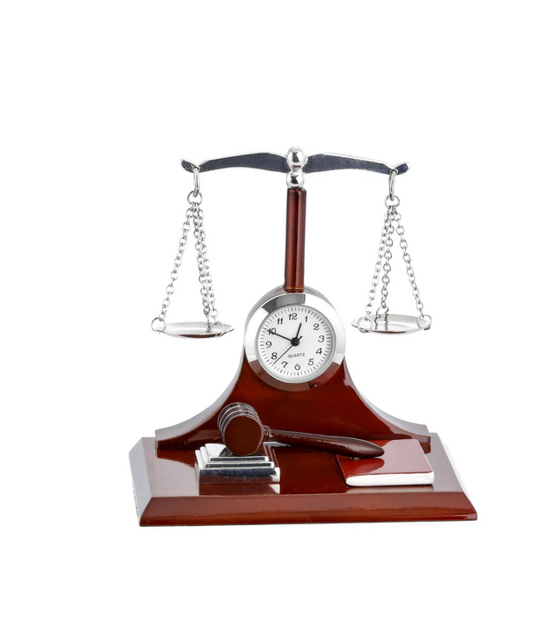 To nie tylko dekoracja – to symbol profesjonalizmu, równowagi i prestiżu. Dzięki połączeniu klasycznej wagi z funkcjonalnym zegarem produkt przyciąga uwagę i podkreśla charakter wnętrza. Doskonale sprawdzi się jako element budujący autorytet przestrzeni.