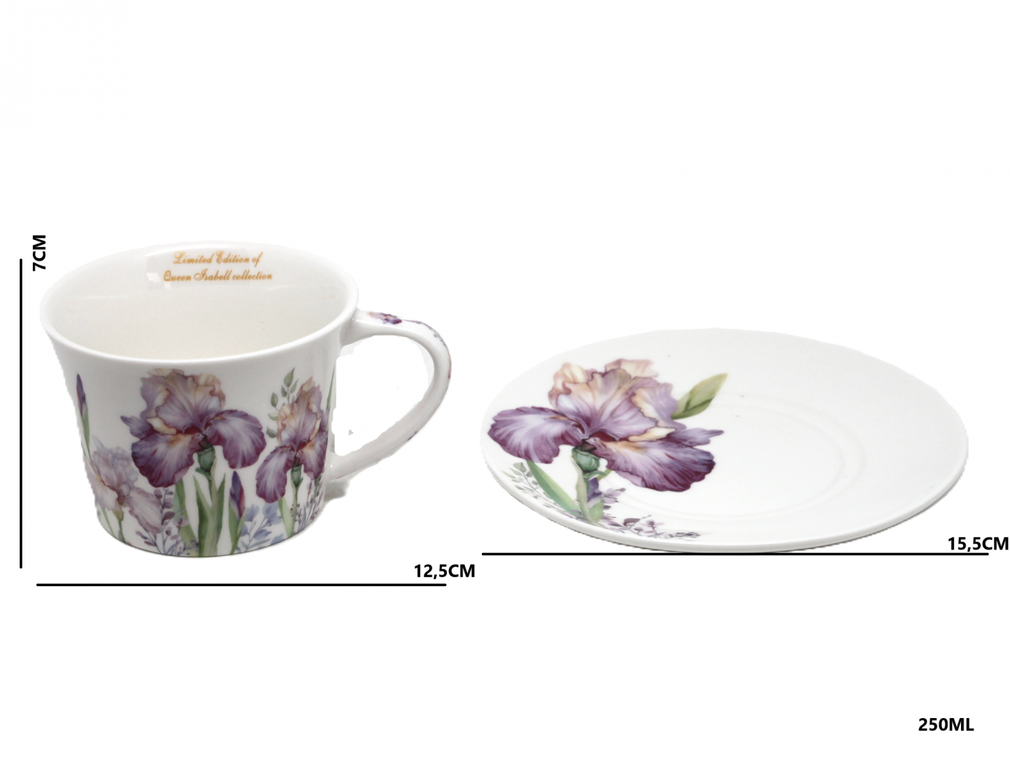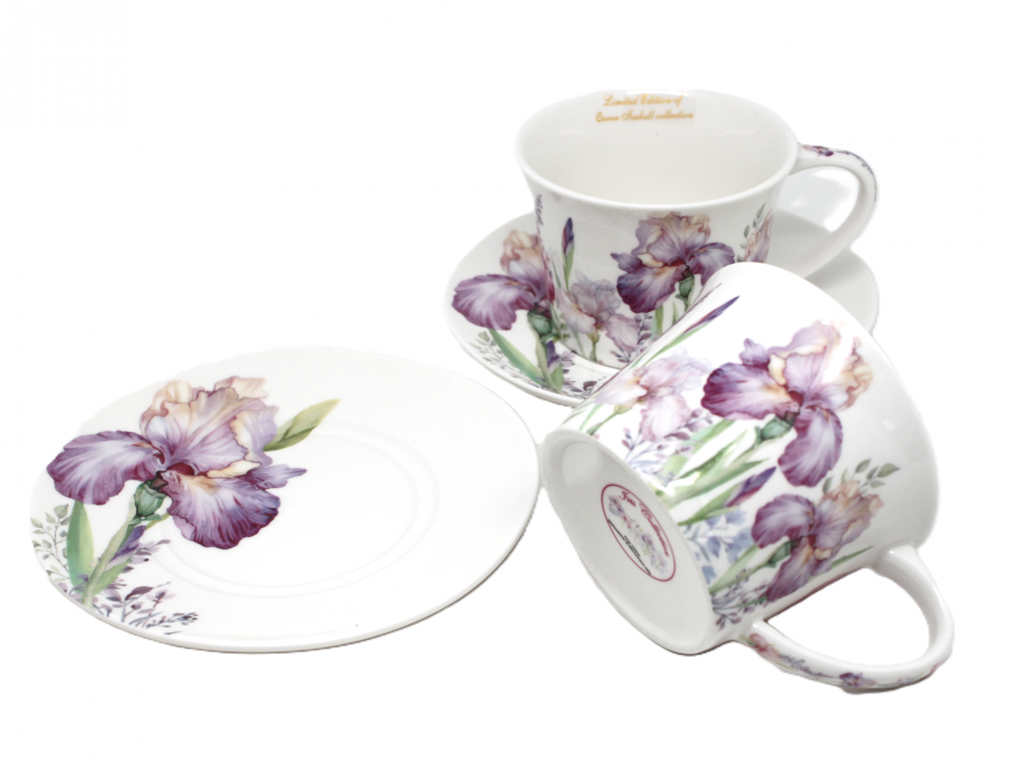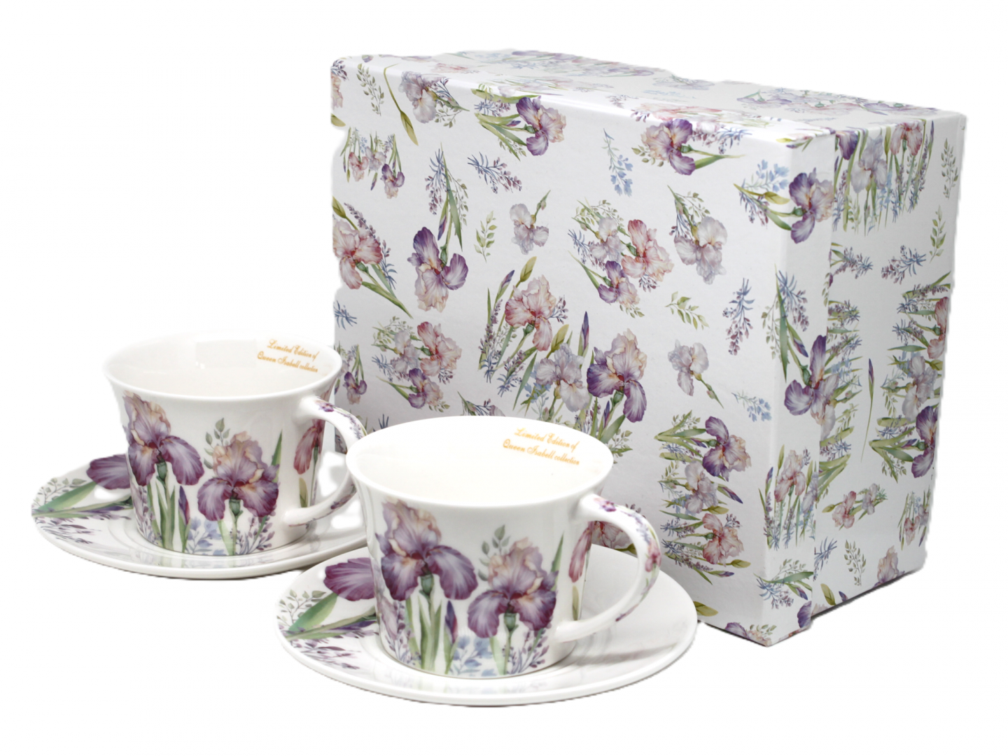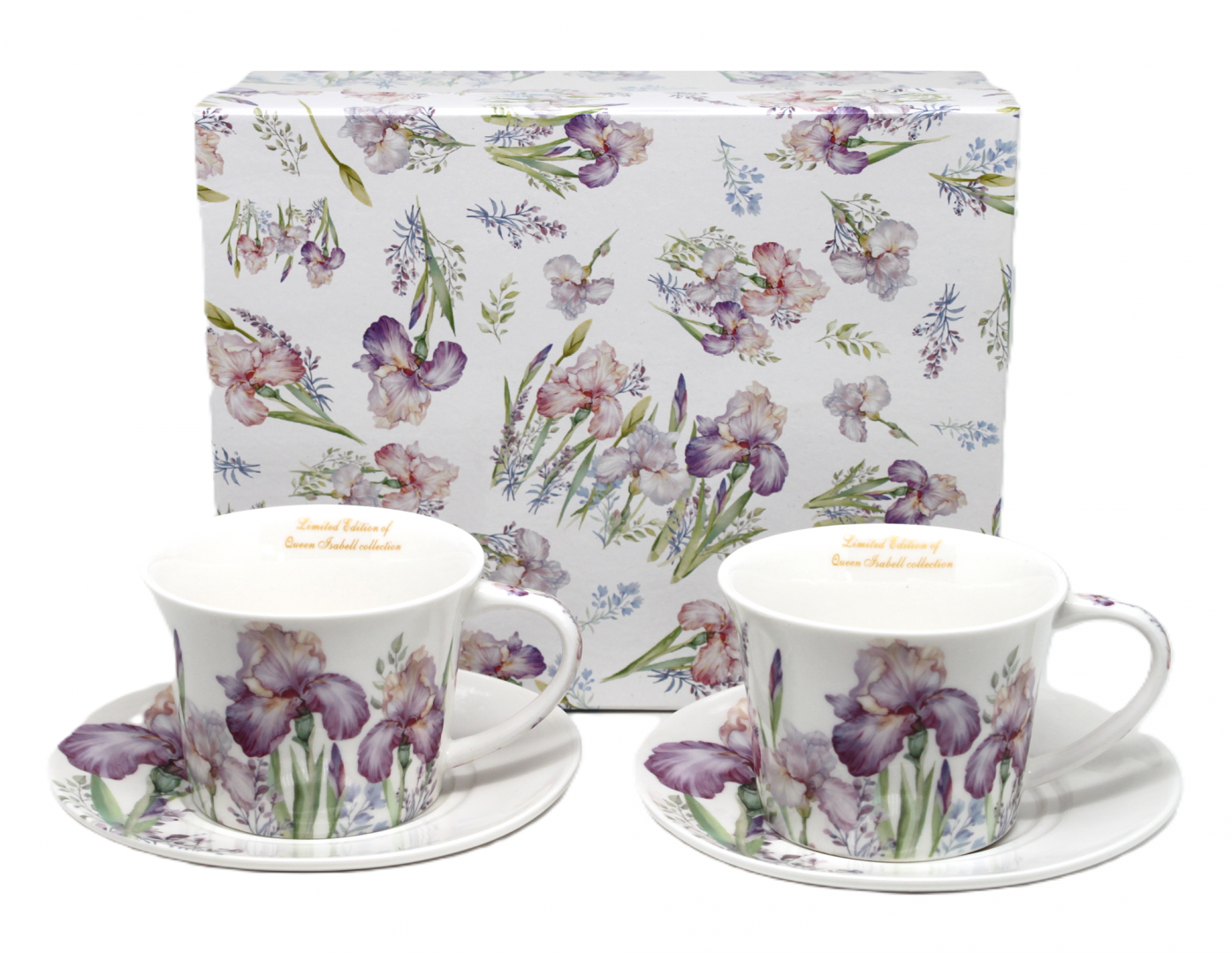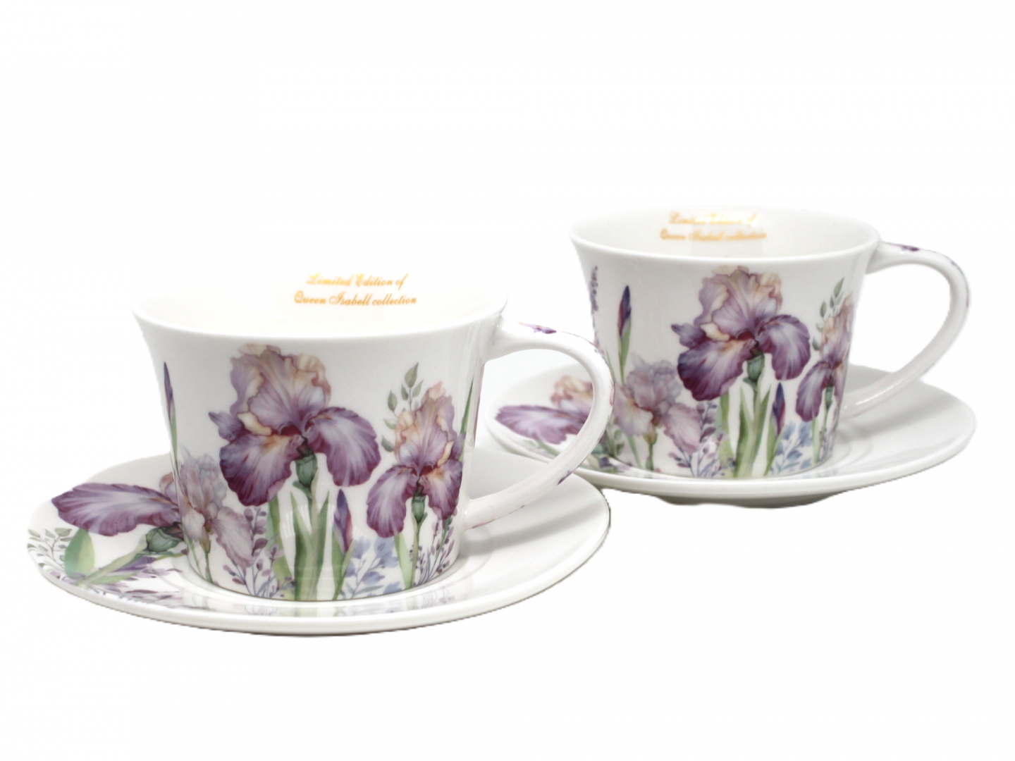 Elegancki porcelanowy zestaw filiżanek motywem irysów 250 ml Queen Isabell
