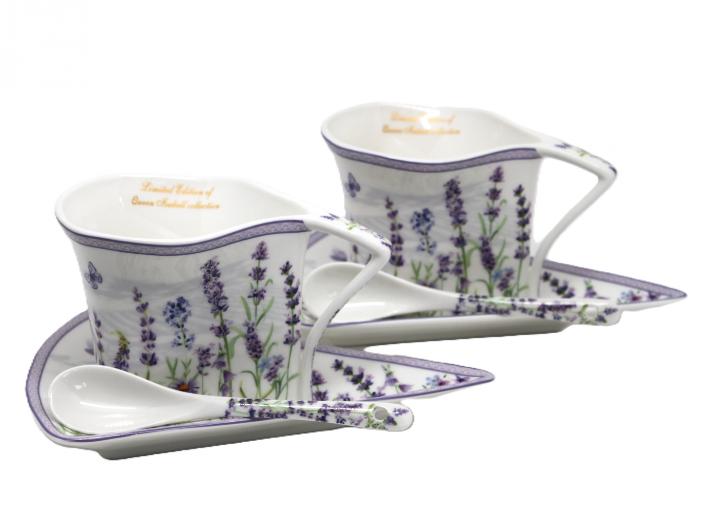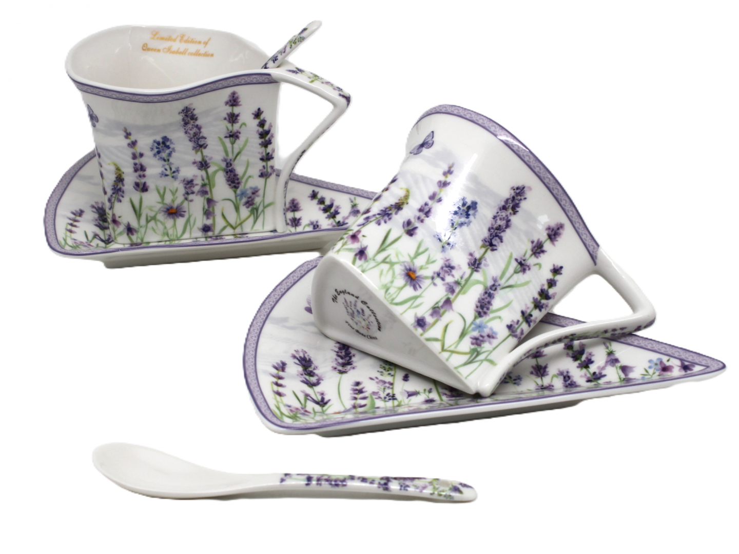 Elegancki porcelanowy zestaw filiżanek motywem lawendy 180ml Queen Isabell
