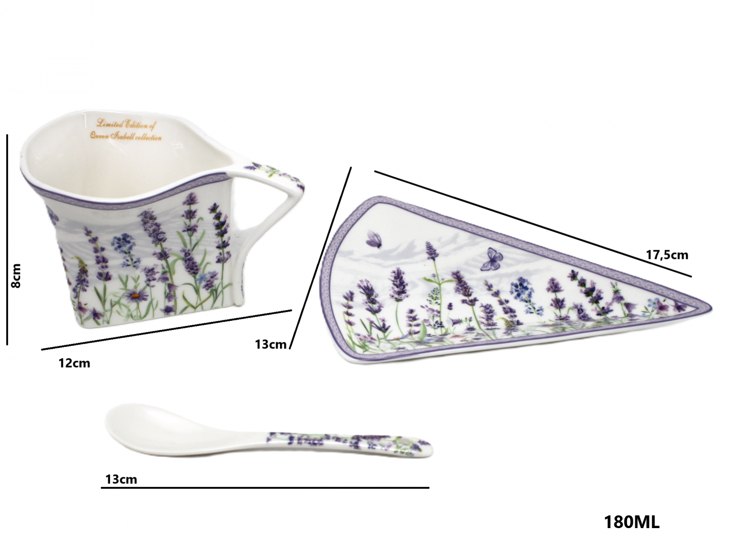 Dodaj odrobinę luksusu i romantyzmu do swoich codziennych rytuałów z porcelanowym zestawem Queen Isabell z motywem lawendy.