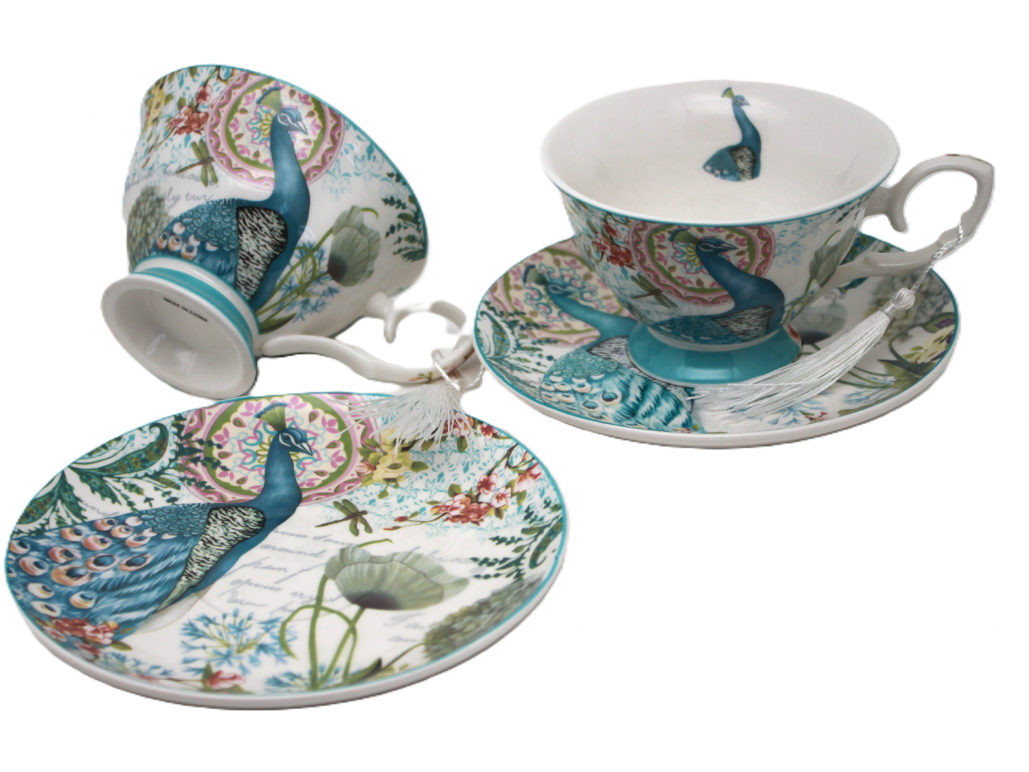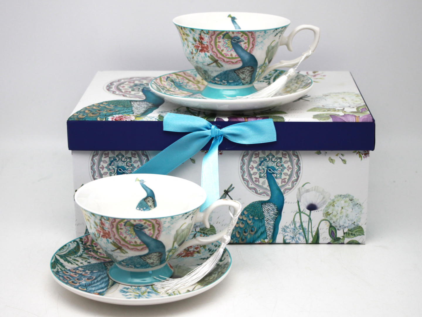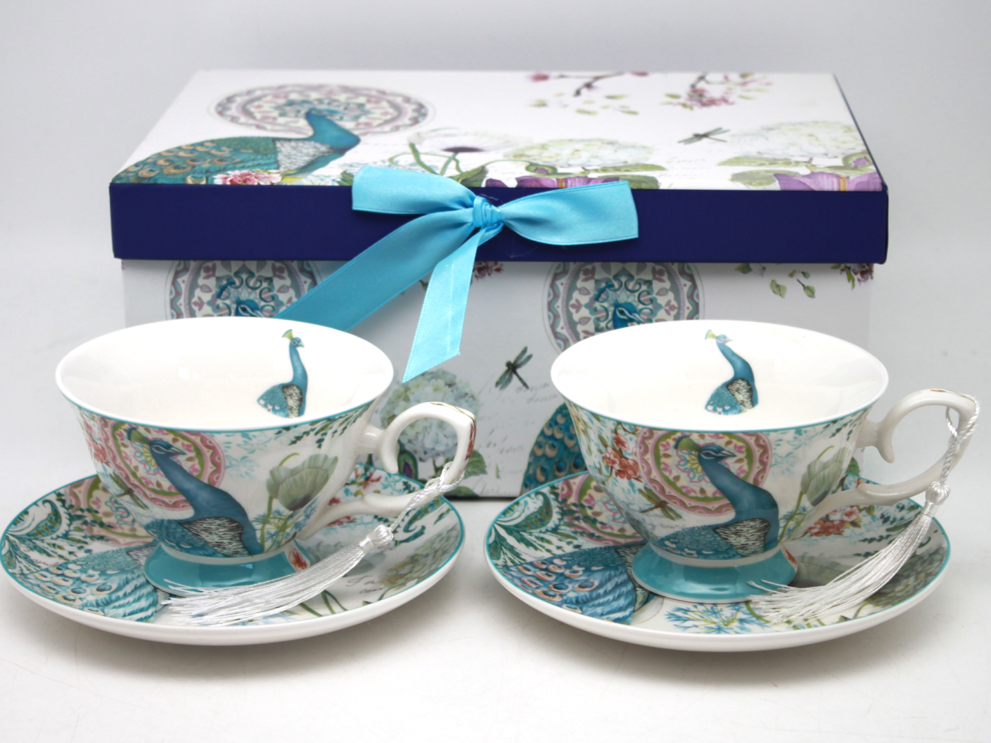 Elegancki porcelanowy zestaw filiżanek motywem pawia 220 ml kawa herbata