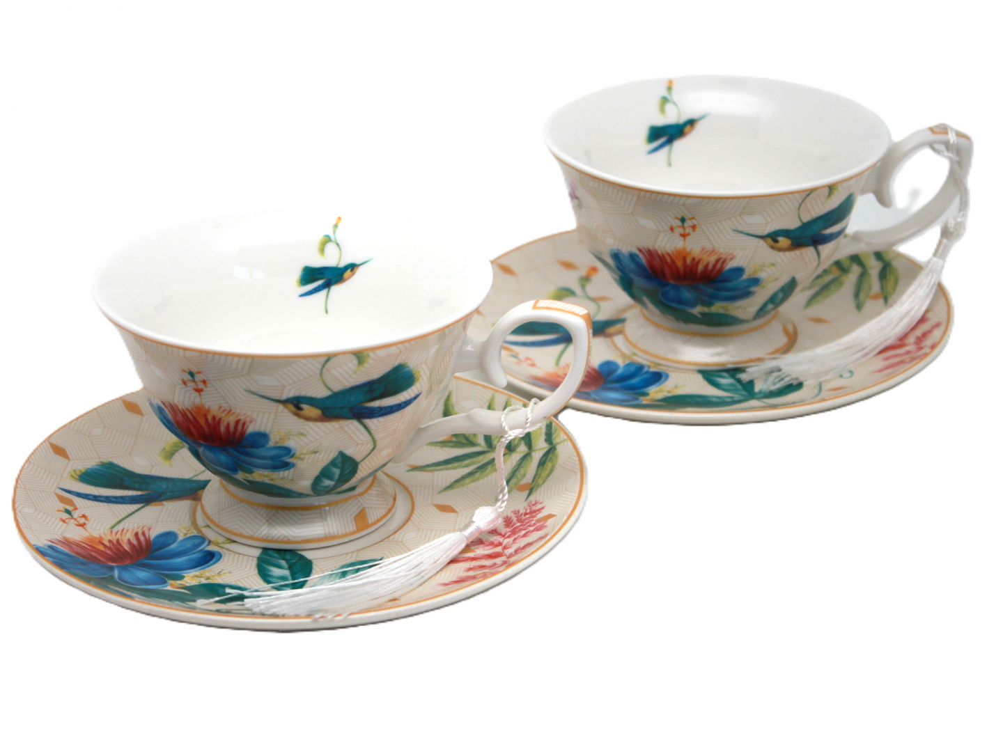 Elegancki porcelanowy zestaw filiżanek ptaki i kwiaty 220 ml kawa herbata