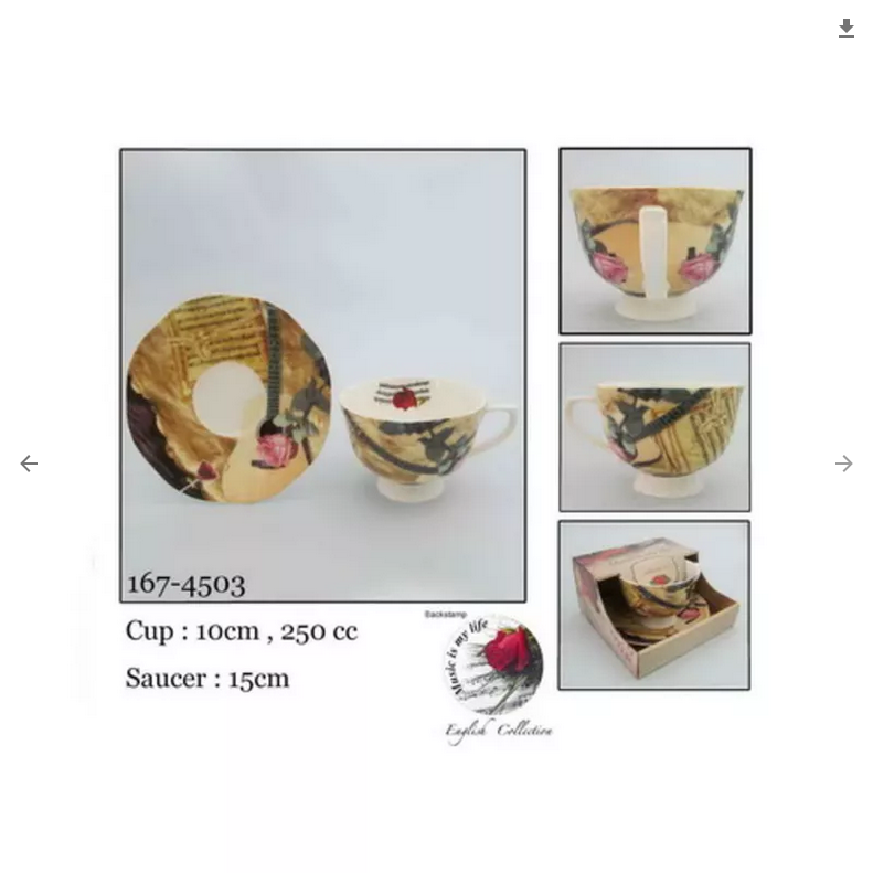 FILIŻANKA 250ML BONE CHINA PORCELANA MOTYW RÓŻE I gitara Z TALERZYKIEM
