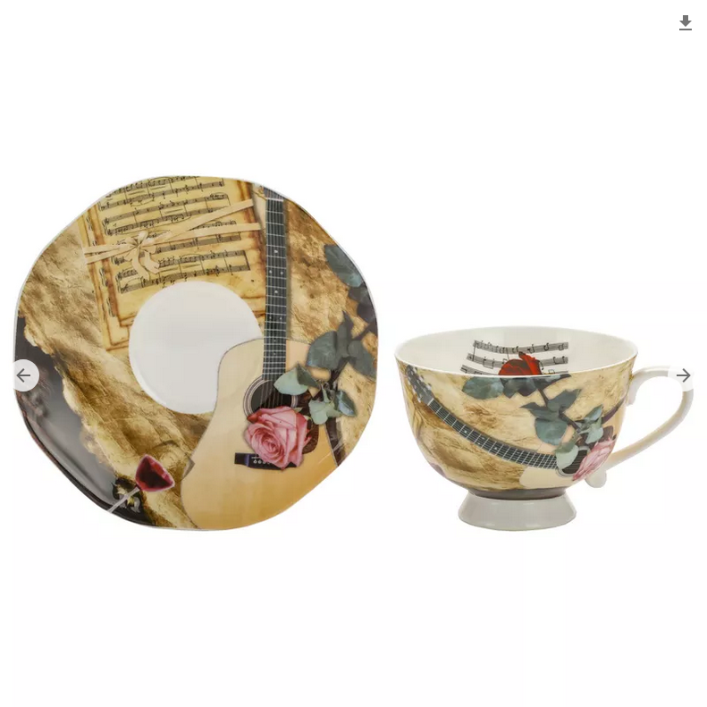 Elegancka filiżanka ze spodkiem i talerzykiem wykonana z porcelany Bone China. Zestaw wyróżnia się delikatnym motywem róż,nut i gitary, który dodaje mu subtelności i uroku. Idealny do serwowania kawy lub herbaty, ten zestaw jest nie tylko praktyczny, ale również stanowi piękną dekorację stołu, nadając każdemu spotkaniu wyjątkowy charakter.