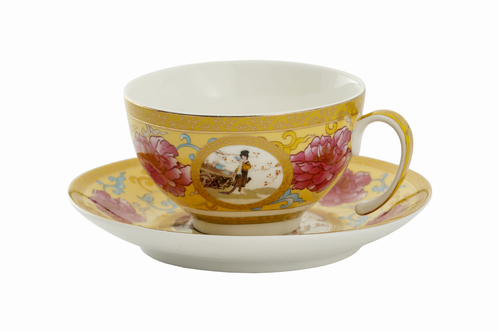 Filiżanka porcelanowa z nowoczesnym nadrukiem. Komplet dla jednej osoby, w którym znajduje się: