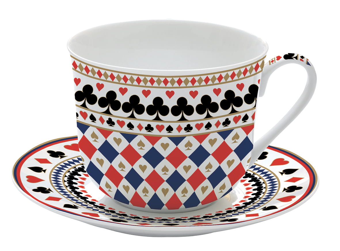 Filiżanka ze spodkiem 400 ml porcelanowa z kolorowym motywem kart