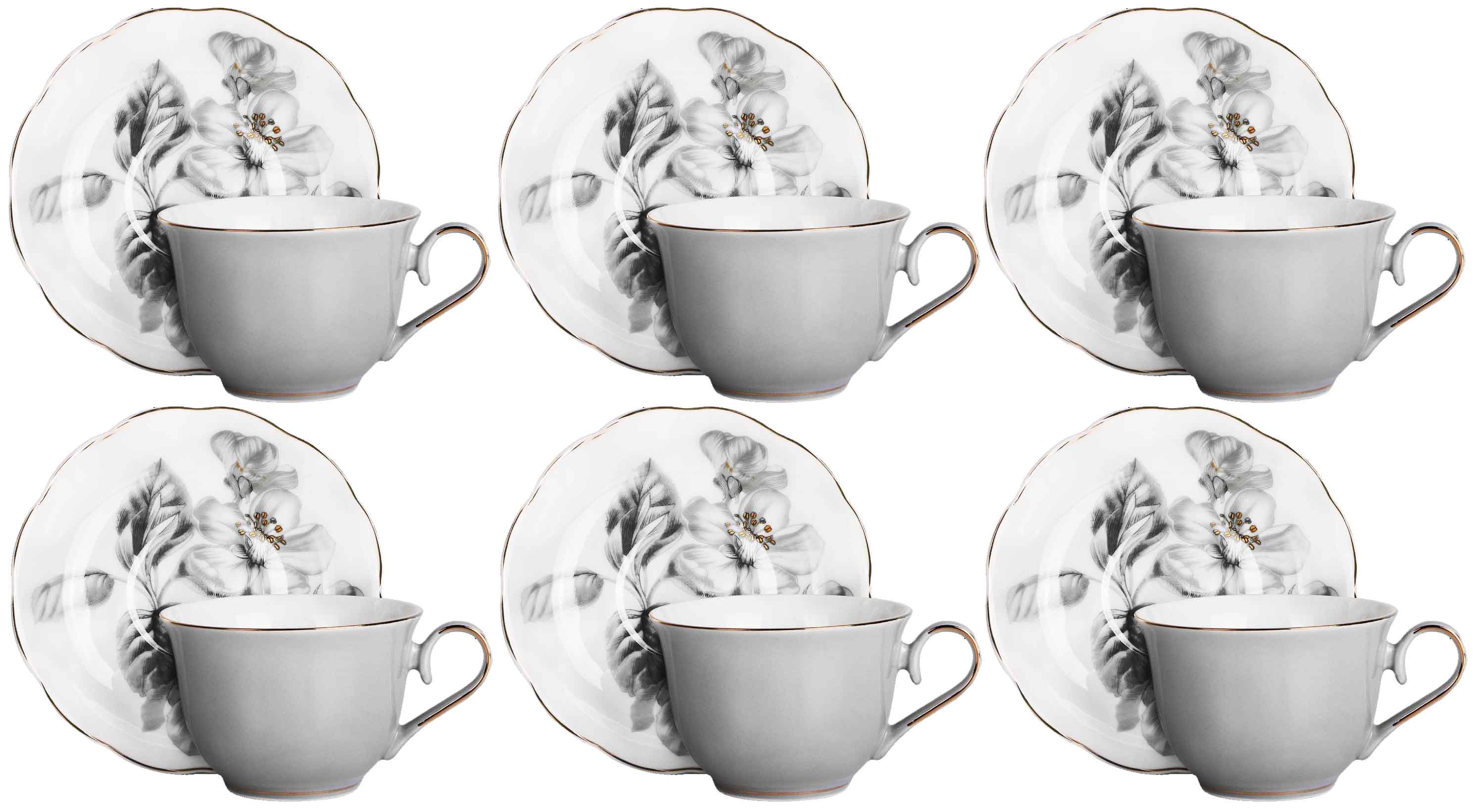 Filiżanki PRINCE 6+6 komplet kawa herbata porcelanowe 270 ml prezent