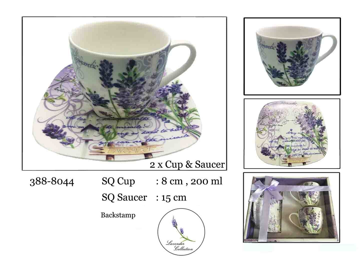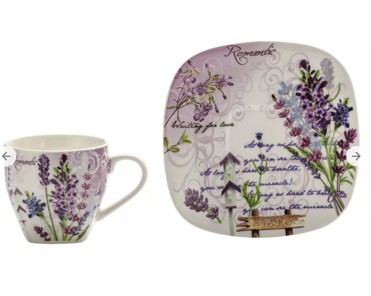 Filiżanki porcelanowe w kolorze złamanej bieli. Przyciągają uwagę przepięknym motywem lawendy. Filiżanki nadają się do serwowania zarówno kawy jak i herbaty. Komplet jest bardzo elegancki i z pewnością uprzyjemni delektowanie się pysznymi napojami. Filiżanki znajdują się w eleganckim opakowaniu, dzięki czemu świetnie sprawdzą się jako prezent.