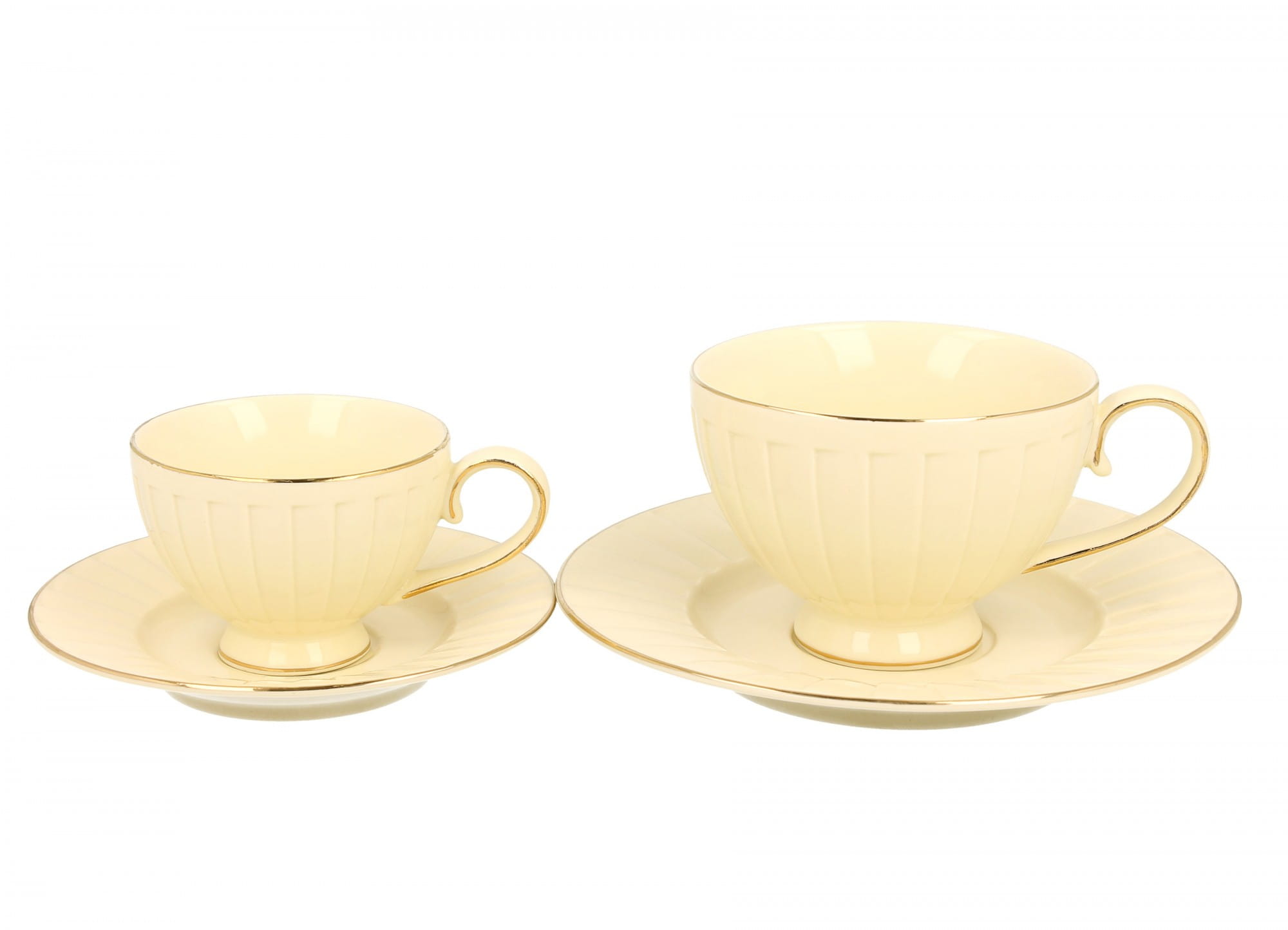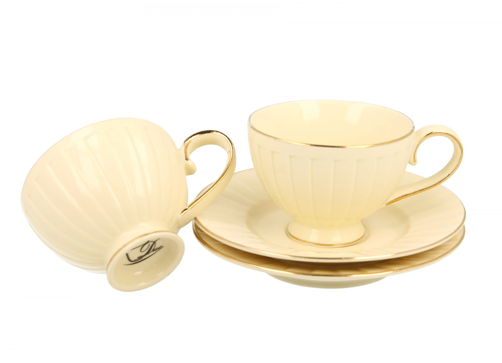 Cechą kolekcji są zdobienia z eleganckimi, podłużnymi tłoczeniami ze złotymi wykończeniami. Wykonane z najwyższej jakości porcelany. Filiżanki nadają się do serwowania kawy. Komplet znajdują się w eleganckim opakowaniu, dzięki czemu świetnie sprawdzą się jako prezent.