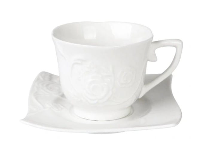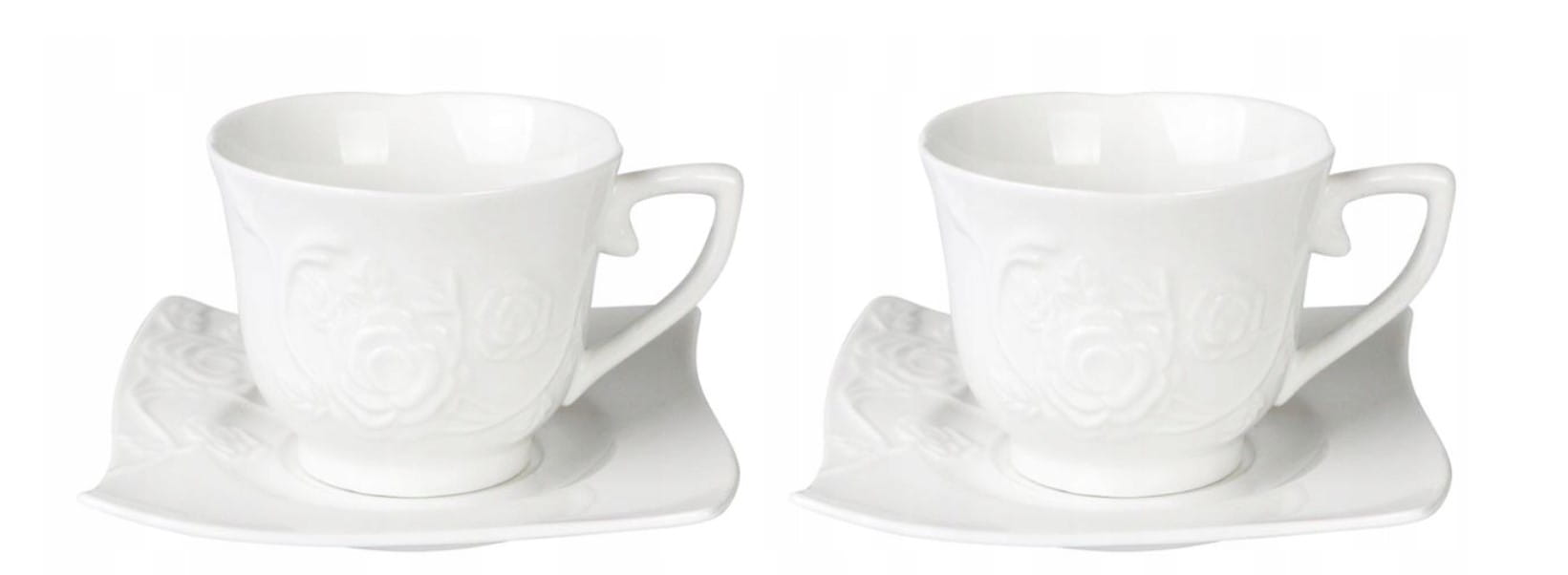 Niezwykle kobiecy komplet: filiżanki do espresso. Wykonane z ceramiki porcelanowej zachwycają tłoczonym wzorem róży. Cały zestaw umieszczony jest w ozdobnym opakowaniu. Prezentowany komplet świetnie sprawdzi się jako prezent na wiele okazji.