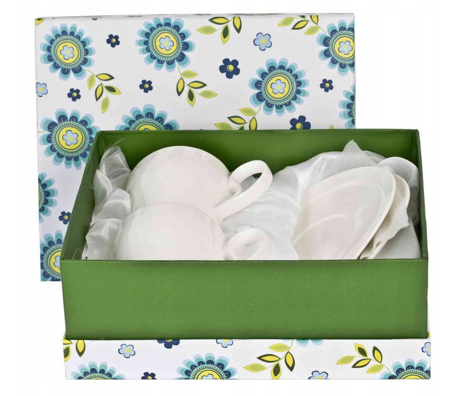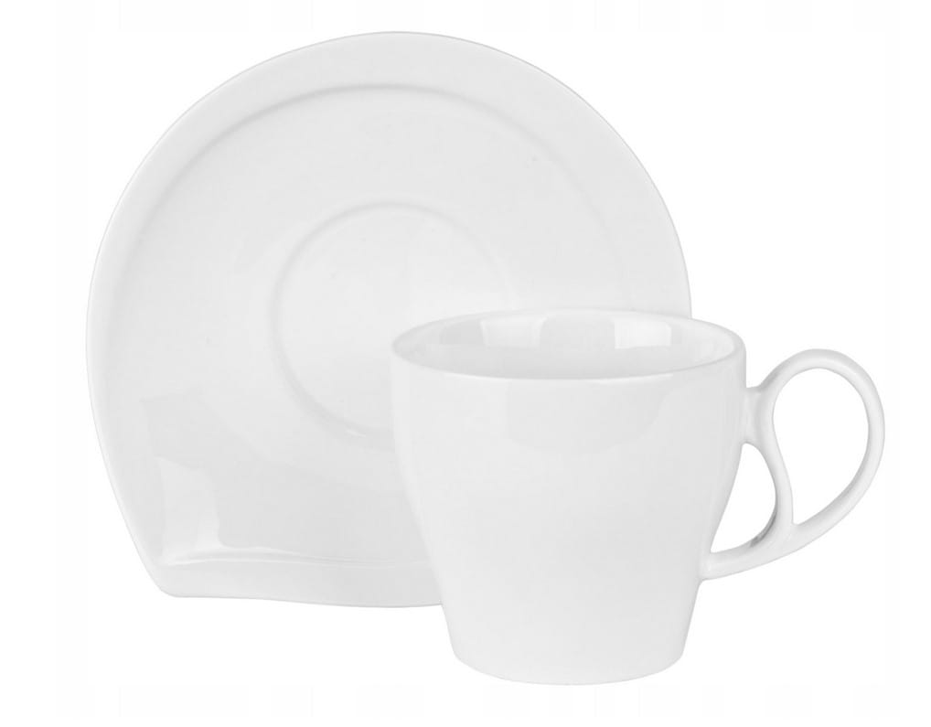 Filiżanki porcelanowe w kolorze złamanej bieli. Przyciągają uwagę finezyjną filiżanką i spodkiem. Filiżanki nadają się do serwowania zarówno kawy jak i herbaty. Komplet jest bardzo elegancki i z pewnością uprzyjemni delektowanie się pysznymi napojami. Filiżanki znajdują się w eleganckim opakowaniu, dzięki czemu świetnie sprawdzą się jako prezent.