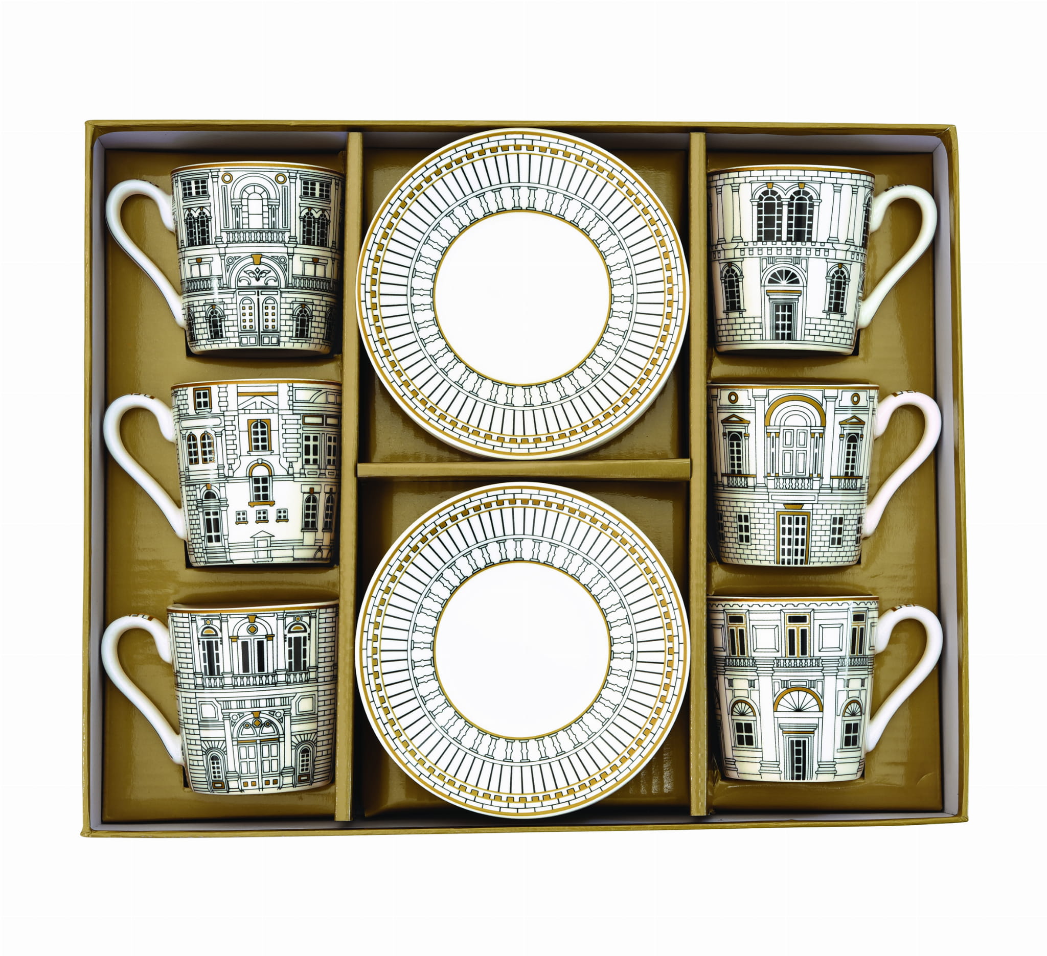 Zestaw filiżanek do kawy o pojemności 100 ml dla sześciu osób, wykonany z porcelan to elegancka i luksusowa propozycja, która wprowadzi włoski szyk do każdego serwisu kawowego. Idealna do serwowania espresso, kawy krótkiej lub małych porcji cappuccino. Filiżanki są wykonane z wysokiej jakości porcelany, znanej ze swojej elegancji, trwałości i luksusowego wyglądu. Filiżanki są utrzymane w kolorach białym, czarnym i złotym. Zestaw zawiera sześć filiżanek oraz sześć spodków, co sprawia, że jest idealny dla większych grup i doskonale nadaje się na spotkania towarzyskie, rodzinne obiady czy przyjęcia. Zestaw filiżanek z motywem Versace w kolorach białym, czarnym i złotym to doskonały pomysł na prezent dla osób ceniących elegancję i luksusowe akcesoria do kawy.