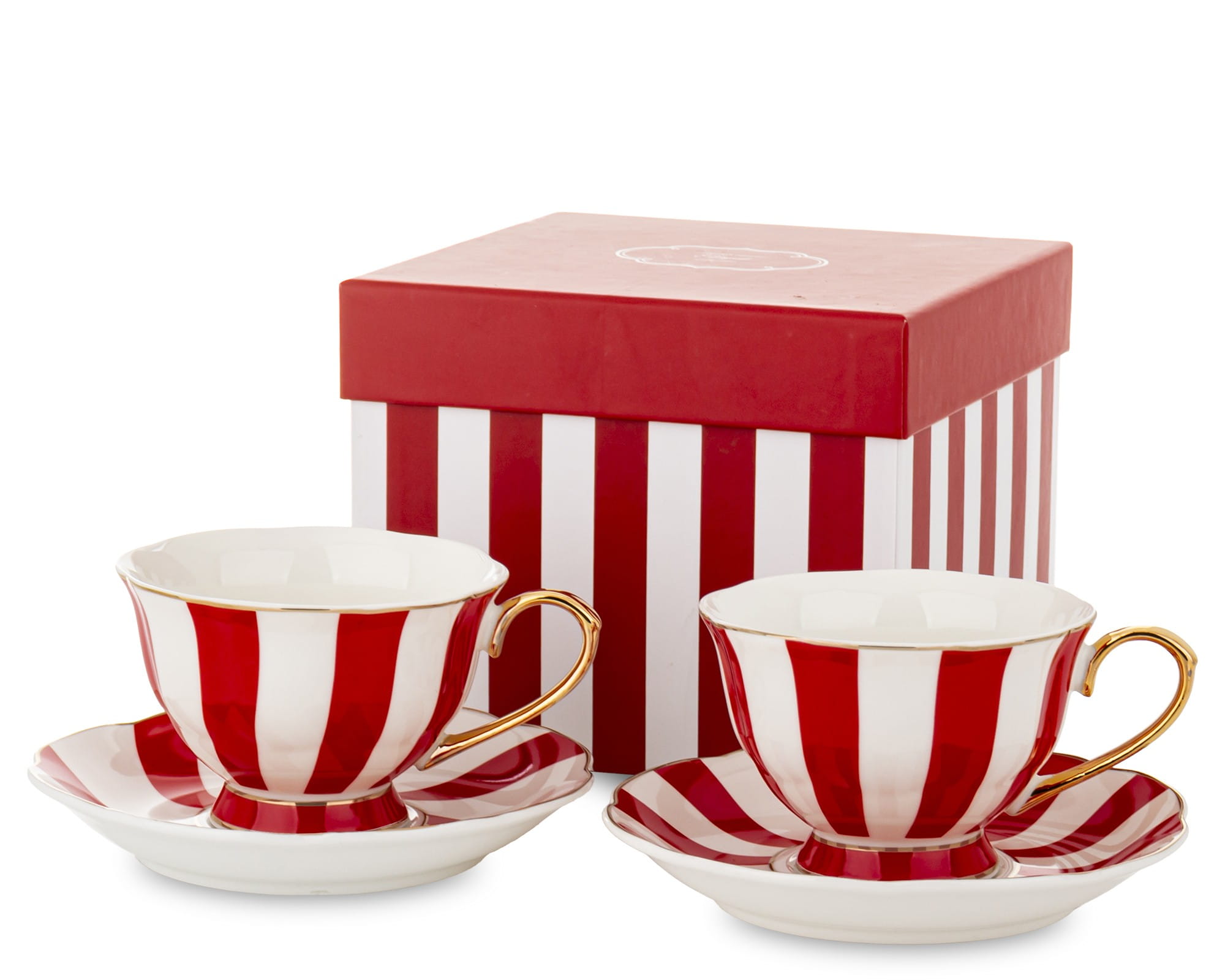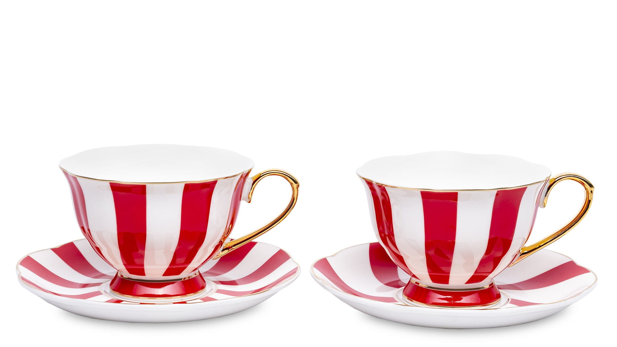 Filiżanki ze spodkiem Komplet 220 ml Biały Czerwony Złoty Zestaw Prezent