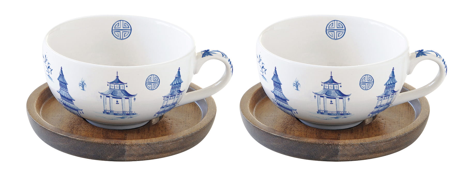 Filiżanka 2+2 dla dwojga z akacjową podstawką 880-8831