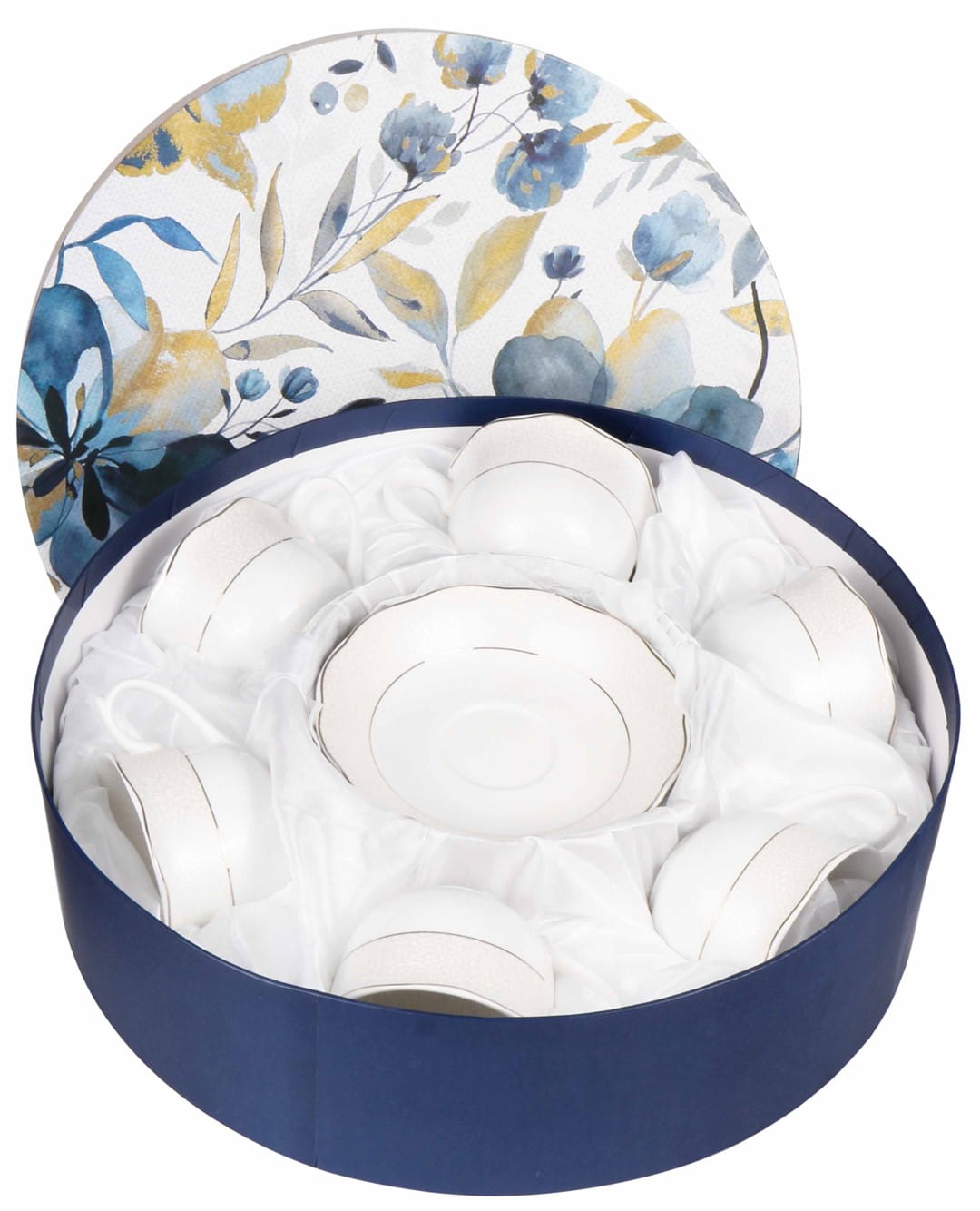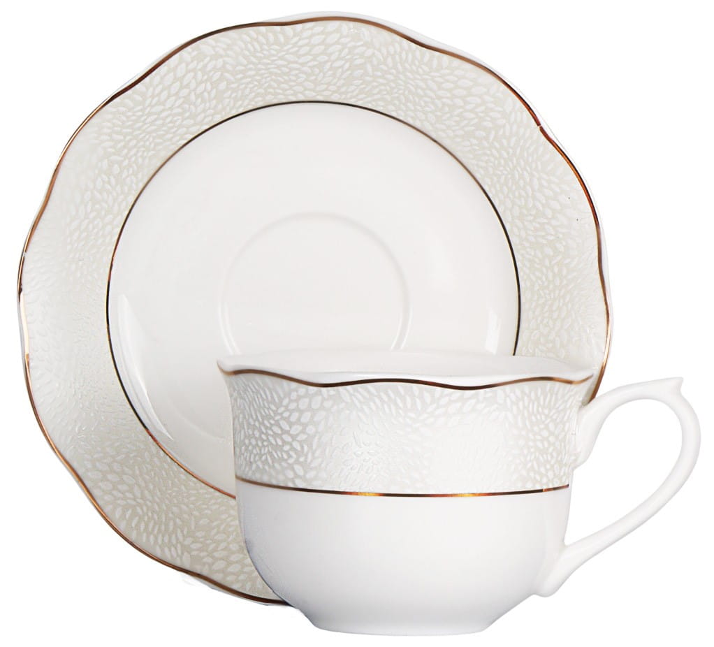 Cechą kolekcji jest ornament w eleganckie, wypukłe cętki i złote zdobienia. Wykonane z najwyższej jakości porcelany new bone china renomowanej marki Veroni. Wszystko zapakowane w ozdobne opakowanie (może się różnić w zależności od dostawy).