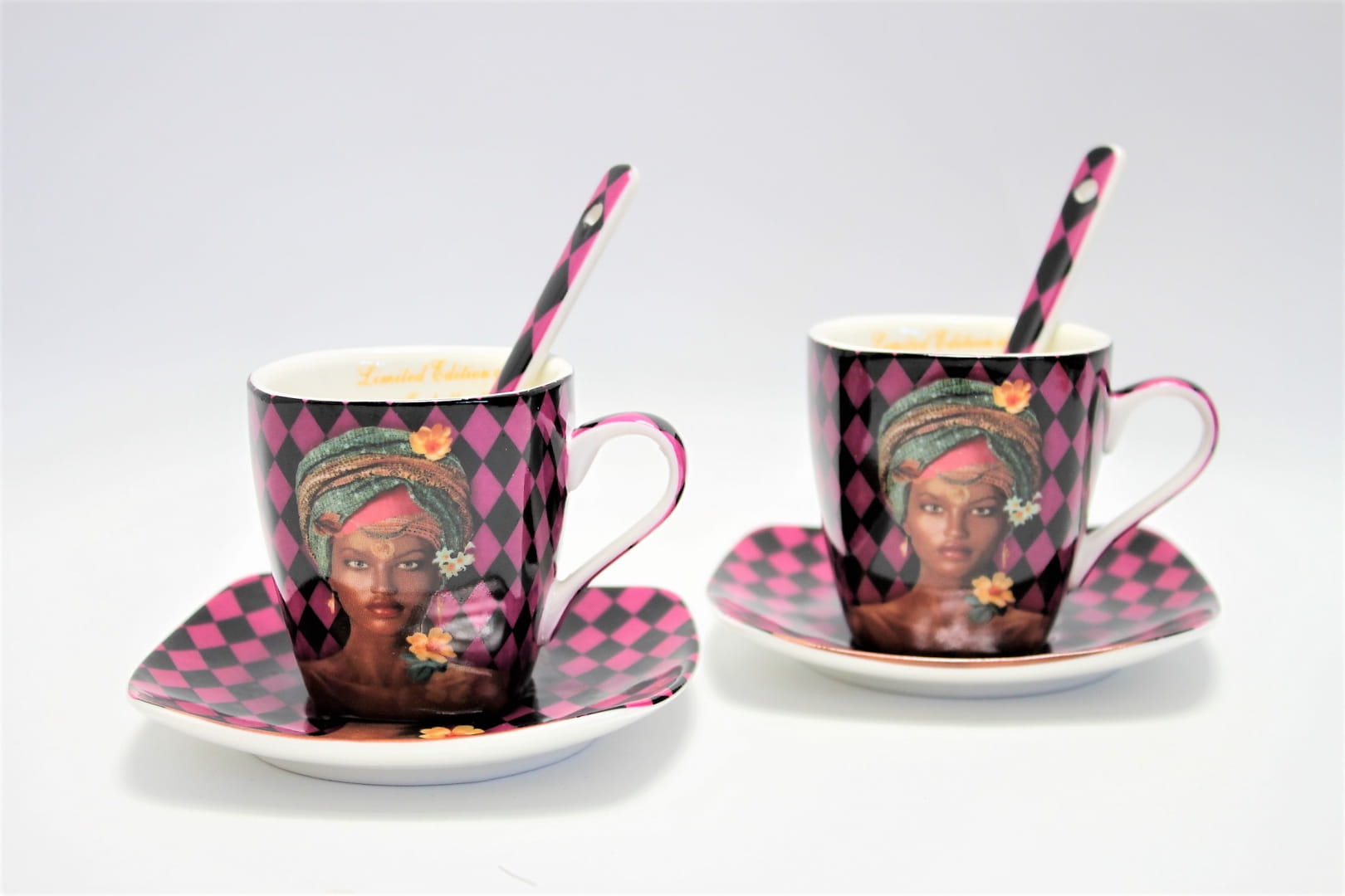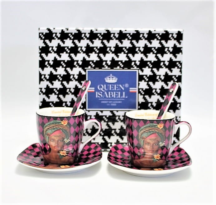 Zestaw do espresso stworzony dla firmy Queen Isabell składa się z dwóch eleganckich filiżanek na podstawkach z łyżeczkami, wykonanych z delikatnej porcelany bone china. Porcelana bone china to wysokiej jakości i ekskluzywny materiał, który odznacza się wyjątkową delikatnością i transparentnością. Jest znana ze swojej niezwykłej wytrzymałości i odporności na uszkodzenia, co czyni ją doskonałym wyborem dla filiżanek na gorące napoje, takie jak espresso. Filiżanki mają idealny rozmiar do podawania intensywnego i aromatycznego espresso. Ich elegancki kształt doskonale dopasowuje się do dłoni, co zapewnia komfortowy chwyt i przyjemność podczas picia kawy. Podstawki pod filiżanki nie tylko spełniają funkcję estetyczną, ale także chronią powierzchnie przed ewentualnymi plamami czy śladami po gorącej zawartości filiżanek. Cały zestaw zostaje zapakowany w ekskluzywne eleganckie opakowanie. Idealnie sprawdzi się jako prezent na wiele okazji.