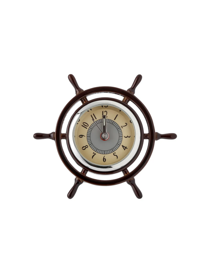 Dodaj swojemu wnętrzu wyjątkowego charakteru dzięki dekoracyjnemu kołu sterowemu z zegarkiem o kompaktowych wymiarach 8,3 × 3,8 × 7,3 cm. Ten unikalny produkt łączy w sobie funkcjonalność i estetykę, stając się nie tylko praktycznym czasomierzem, ale również efektowną ozdobą inspirowaną klimatem morskich przygód