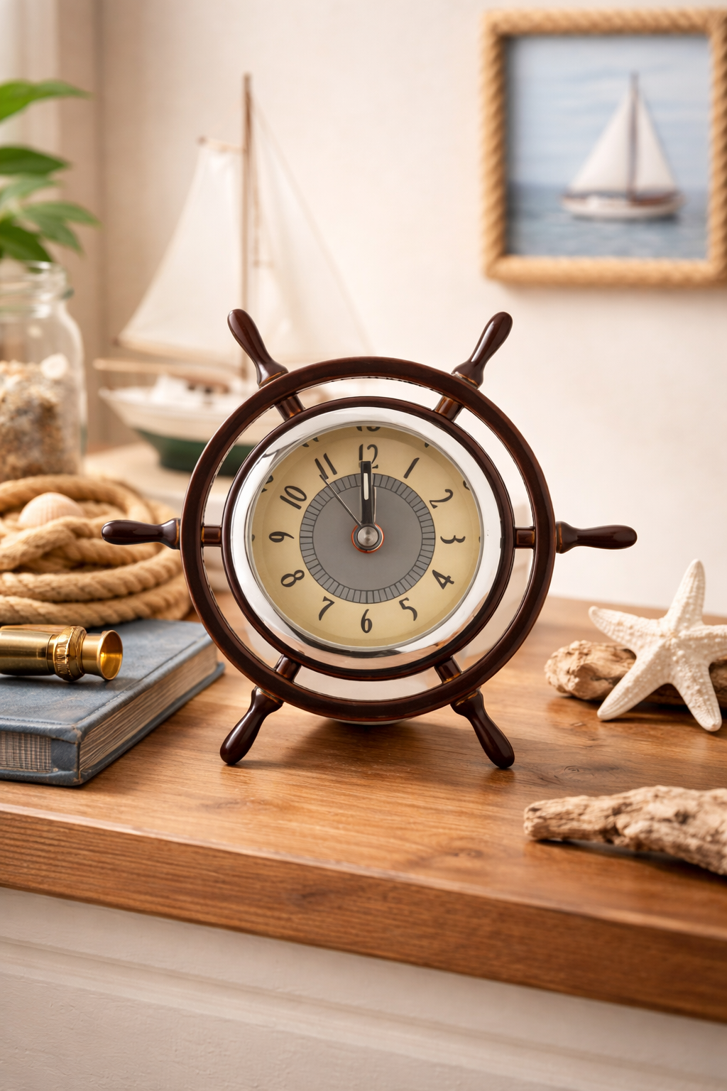 Koło sterowe z zegarkiem – stylowy akcent marynistyczny do Twojego wnętrza