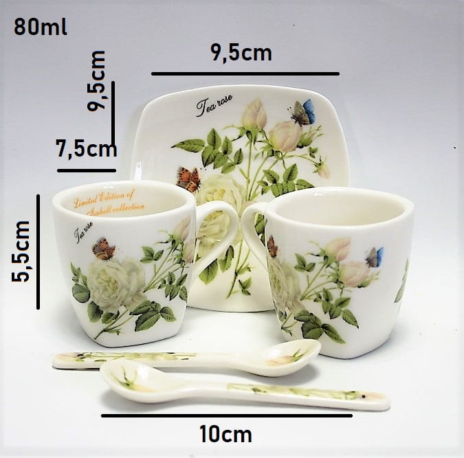 Komplet Espresso Dla Dwojga Łyżeczki 2+2+2 Kwiaty 90 ml