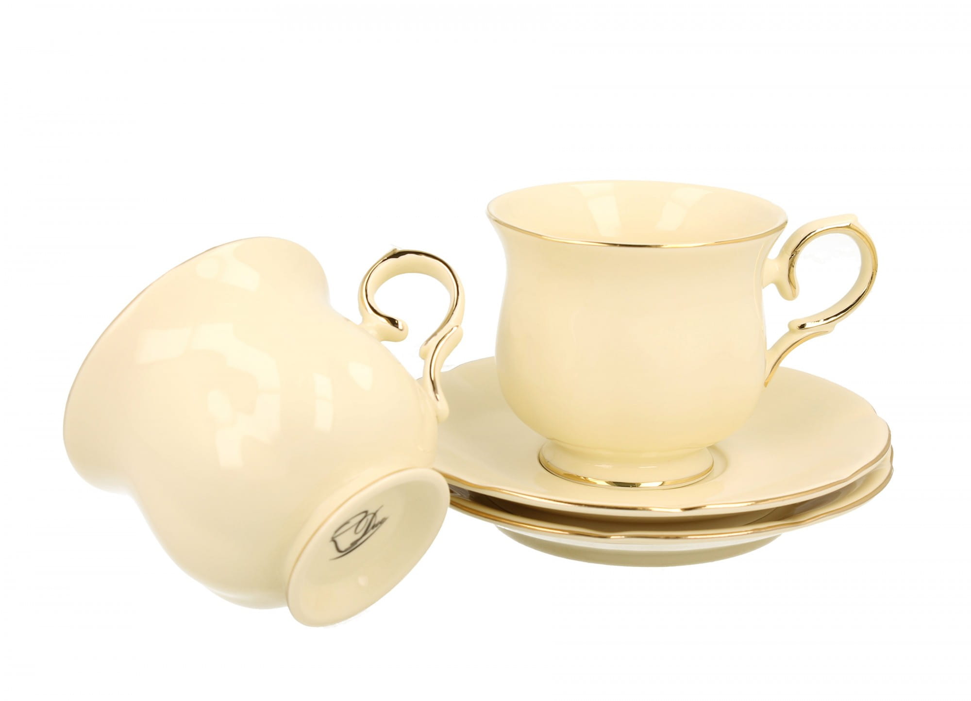 Filiżanki z najwyższej jakości porcelany, w kolorze ecru z wyrafinowanym uchwytem, na stopce oraz ze złotymi wykończeniami. Filiżanki nadają się do serwowania zarówno kawy jak i herbaty. Komplet jest bardzo elegancki i z pewnością uprzyjemni delektowanie się pysznymi napojami. Filiżanki znajdują się w eleganckim opakowaniu, dzięki czemu świetnie sprawdzą się jako prezent.