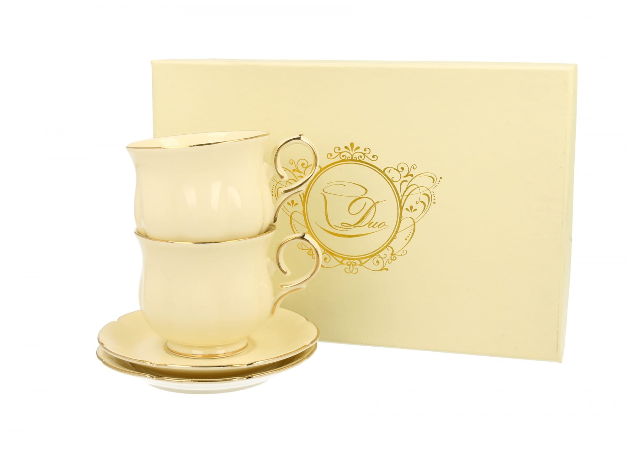 Filiżanki espresso z najwyższej jakości porcelany, w kolorze ecru z wyrafinowanym uchwytem, na stopce oraz ze złotymi wykończeniami. Filiżanki nadają się do serwowania zarówno kawy jak i herbaty. Komplet jest bardzo elegancki i z pewnością uprzyjemni delektowanie się pysznymi napojami. Filiżanki znajdują się w eleganckim opakowaniu, dzięki czemu świetnie sprawdzą się jako prezent.
