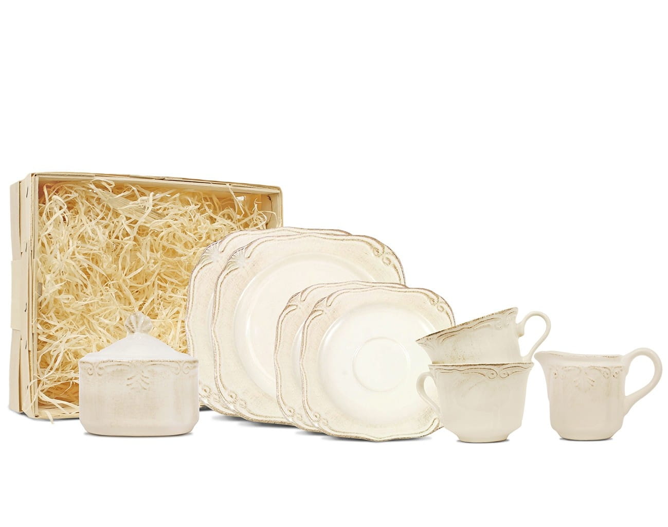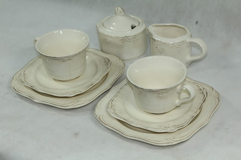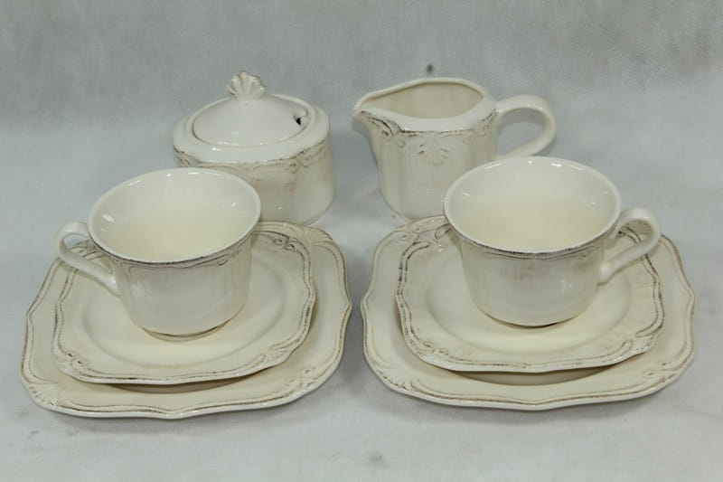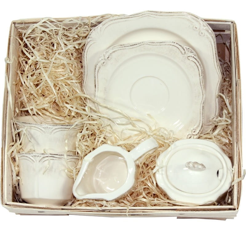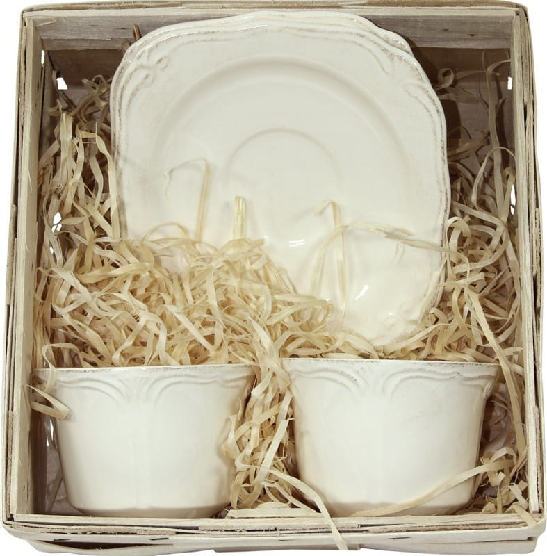 Wykonane z najwyższej jakości ceramiki. Zestaw posiadają zdobienia z motywami retro z zastosowaniem efektu przecierki, z pewnością przykuje uwagę każdego gościa, którego zaprosisz na popołudniową herbatę, kawę i stanie się wspaniałą dekoracją stołu. Wszystko zapakowane w ozdobne opakowanie (może się różnić w zależności od dostawy).