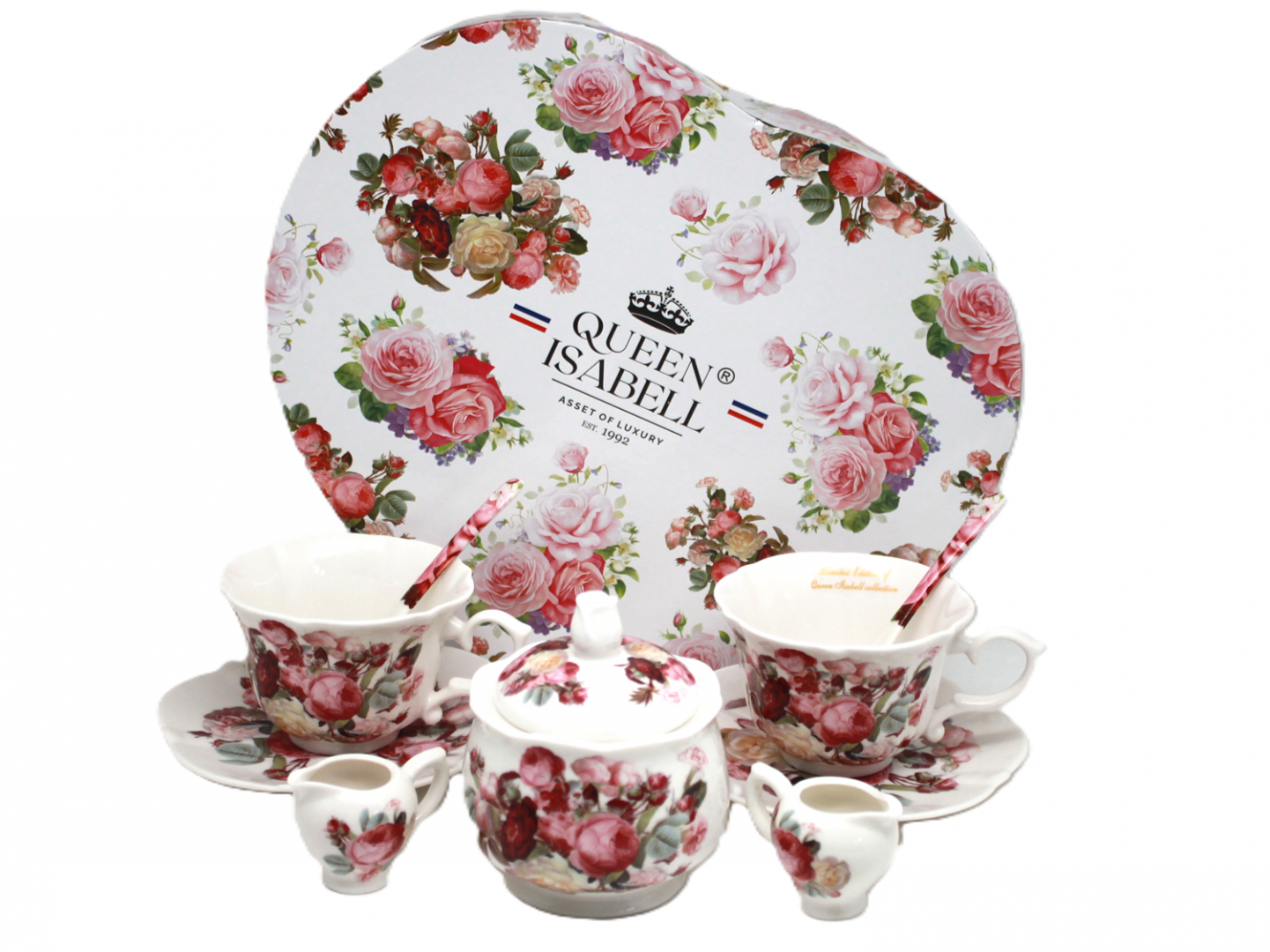 Zapraszamy do zakupu limitowanej kolekcji zestawu dla dwojga wykonanego z wyjątkowej porcelany bone china dla firmy Queen Izabell. Ten elegancki zestaw składa się z dwóch filiżanek z podstawkami i łyżeczkami, dwóch małych mleczników i jednej cukiernicy. Porcelana bone china to jedna z najwyższej jakości porcelan, której produkcja wymaga wieloletniego doświadczenia i umiejętności. Jest to delikatna i lekka porcelana, charakteryzująca się pięknym blaskiem, a jednocześnie bardzo trwała i wytrzymała na uszkodzenia. Na każdym elemencie zestawu znajduje się motyw pięknych róż na białym tle. Całość zapakowana jest w piękne ozdobne pudełko w kształcie serca, które nawiązuje do motywu z porcelany. Ten komplet jest idealnym prezentem dla pary, która ceni sobie piękno i wysoką jakość produktów. Będzie stanowić piękne i niezapomniane akcesorium podczas codziennych herbat czy kaw w gronie bliskich osób.