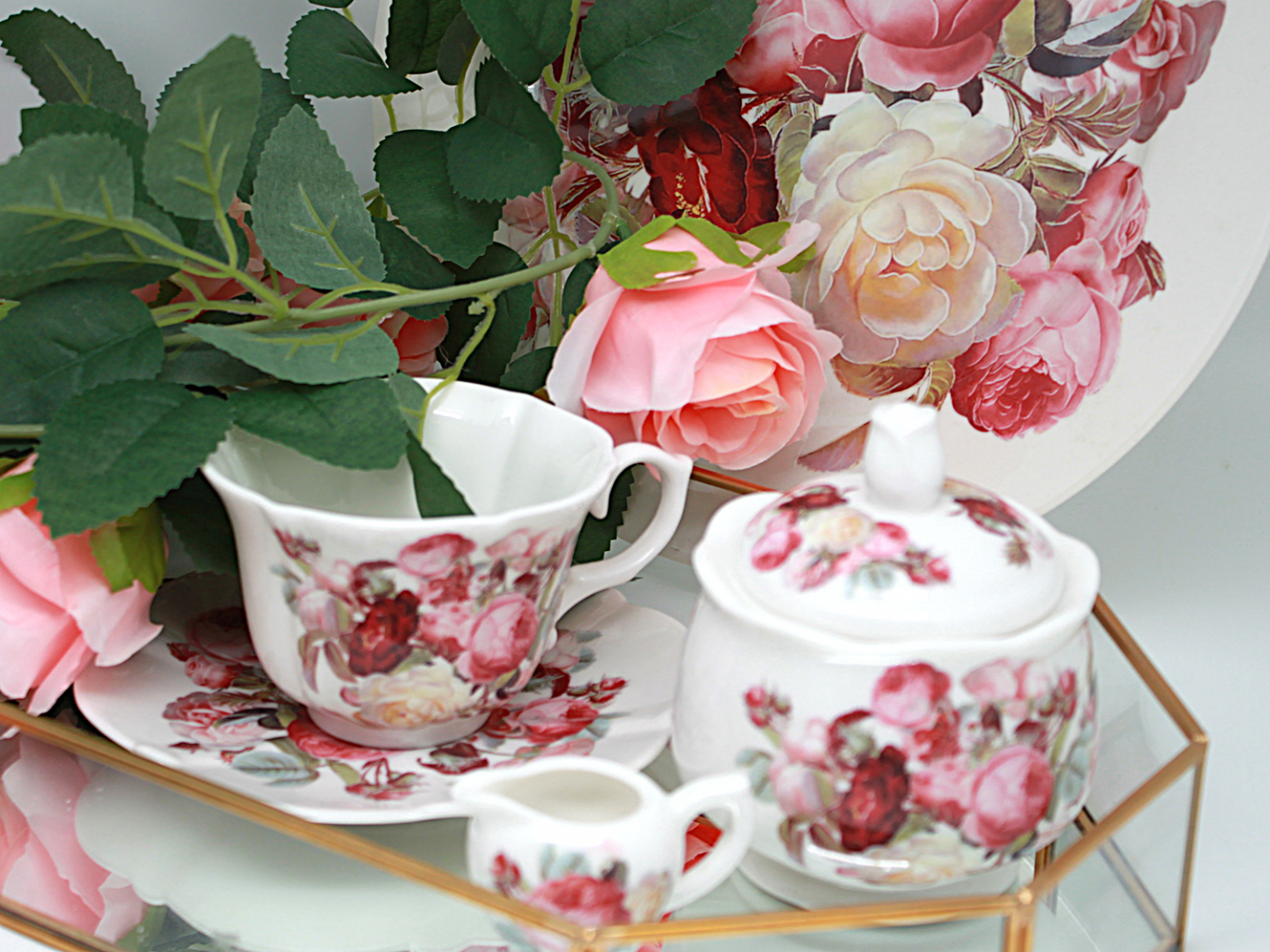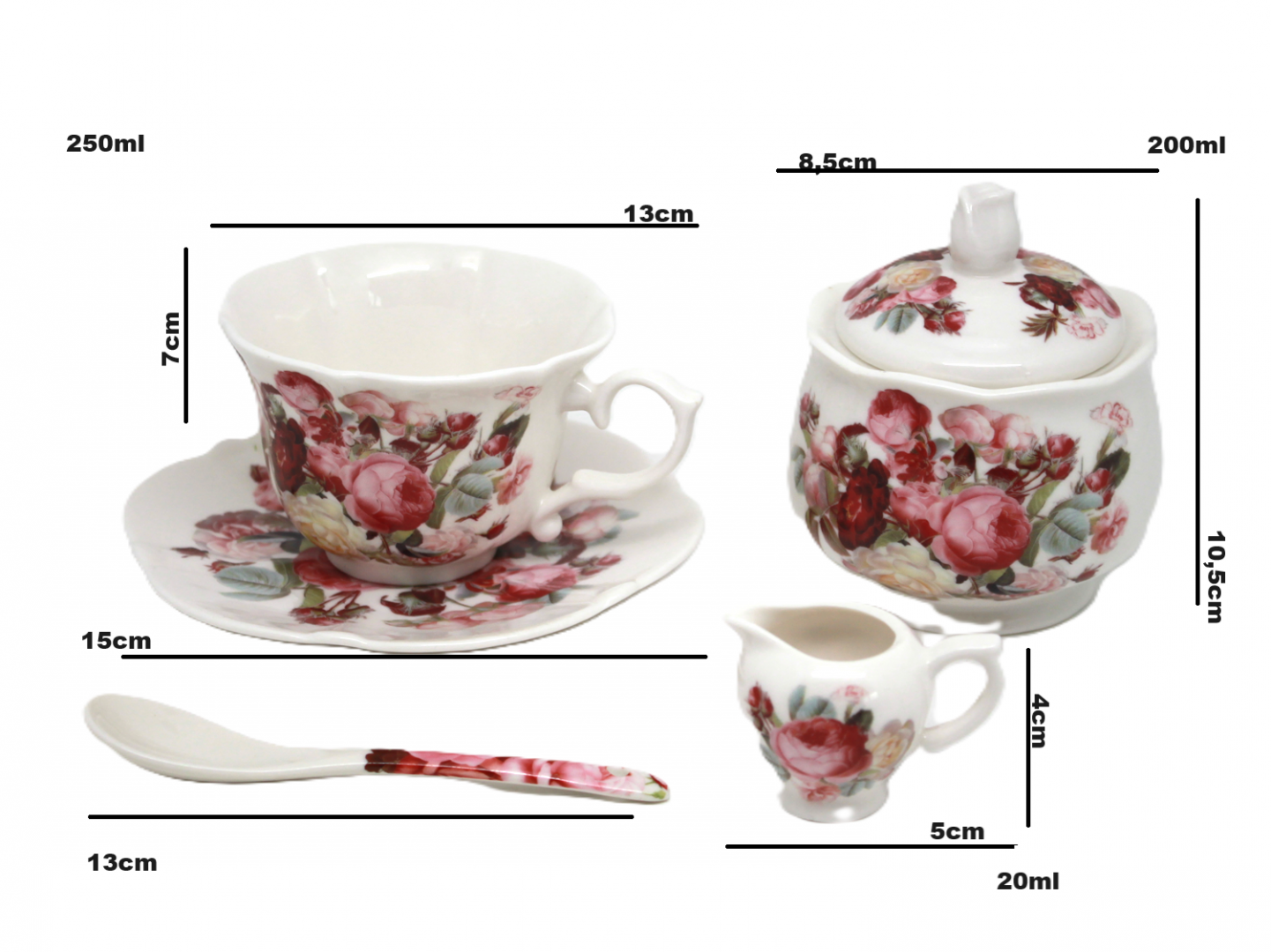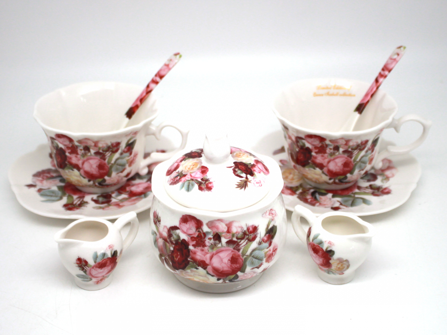 Kpl dla Dwojga 2 x filiżanki 2 x mlecznik cukiernica zestaw kwiaty róże