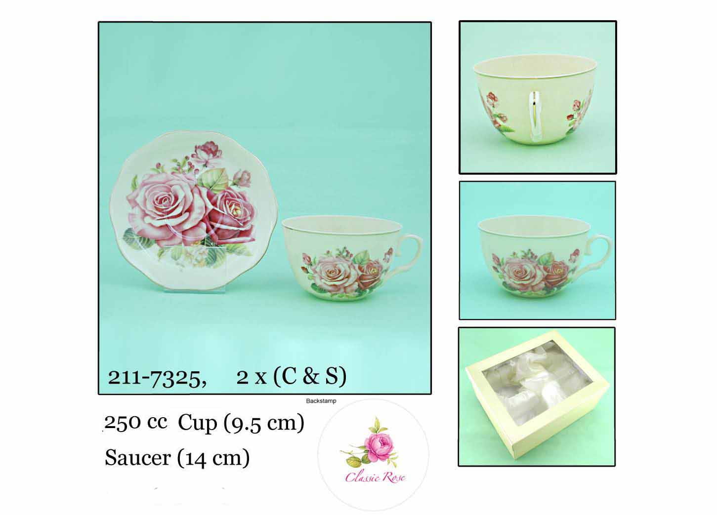 Kpl porcelanowy filiżanki + spodek 9,5 cm róże 2+2 Zestaw elegancki prezent