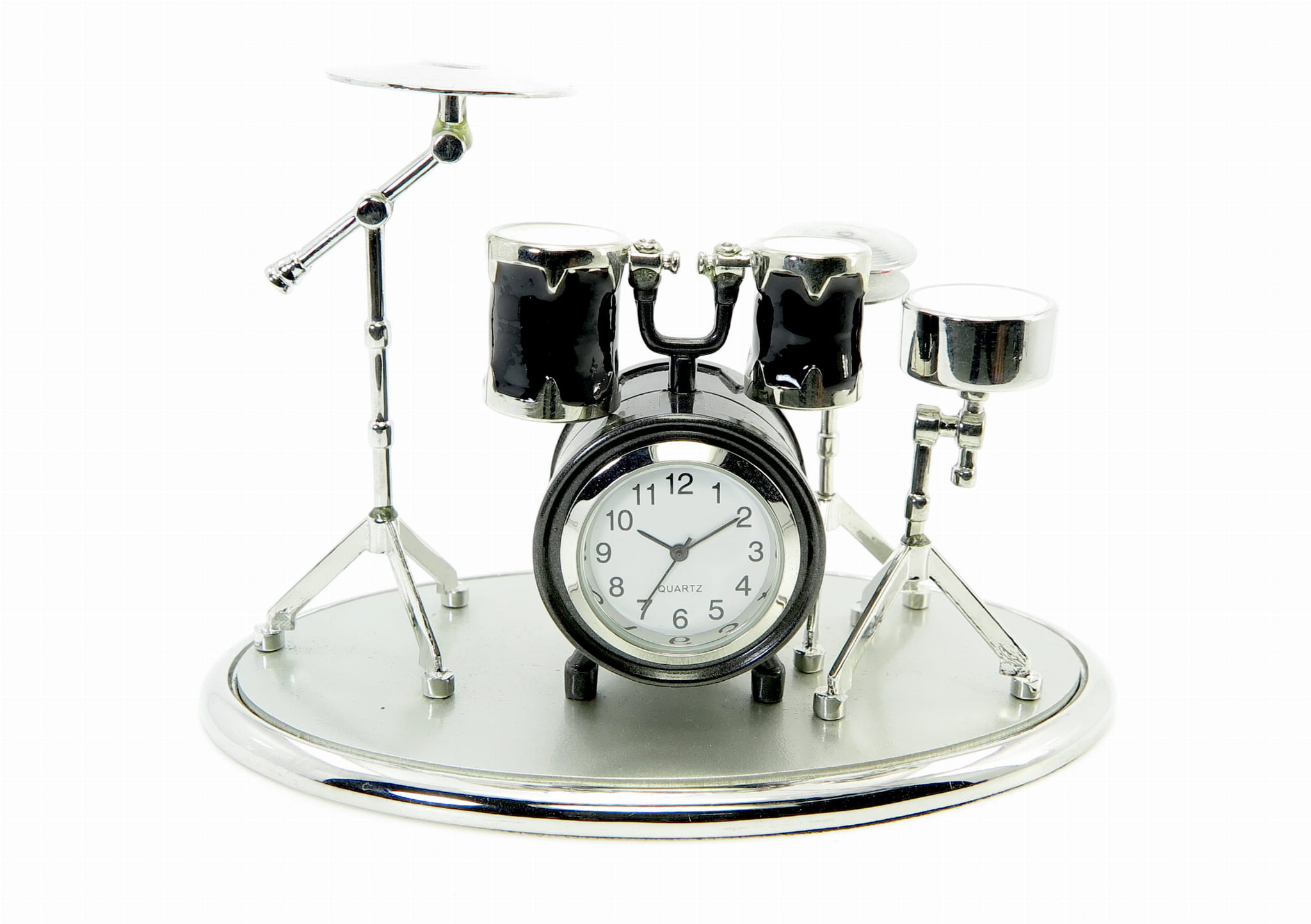 Elegancka perkusja w całości wykonano z metalu, charakteryzuje się dużą wytrzymałością i wysoką jakością. Dodatkowym atutem jest wbudowany zegar (zasilany baterią). Perkusja jest wspaniałą ozdobą i dekoracją pokoju dla dziecka jak i dla dorosłej osoby. Może być dobrym pomysłem na udany prezent.
