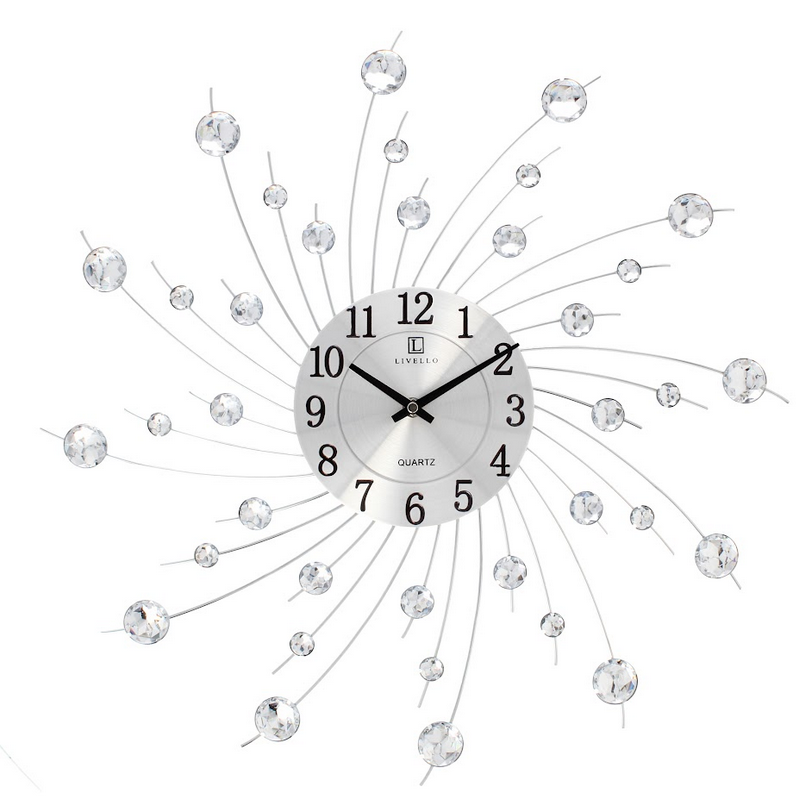 Zegar Ścienny Livello Nowoczesny z Kryształkami 51 cm srebrny metalowy