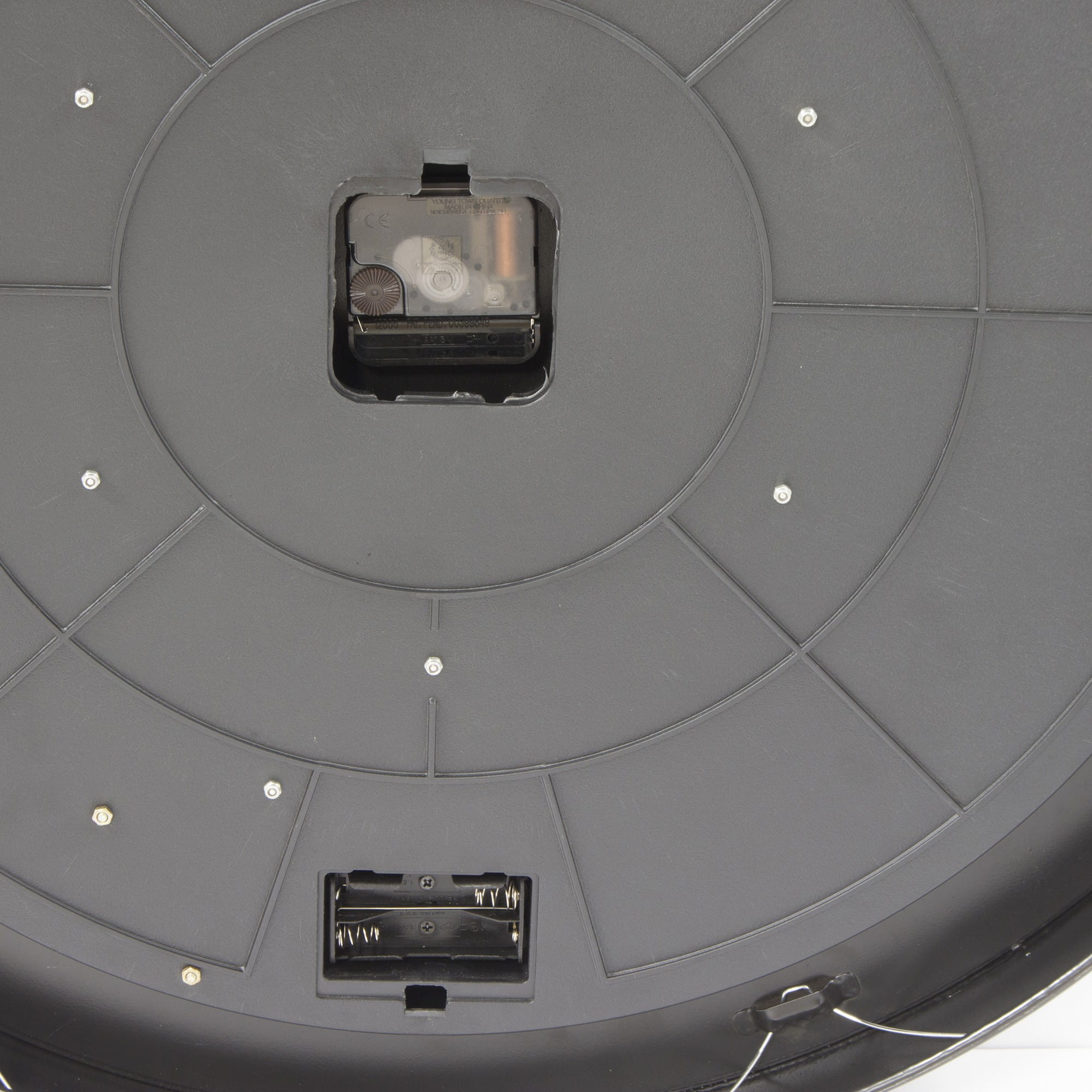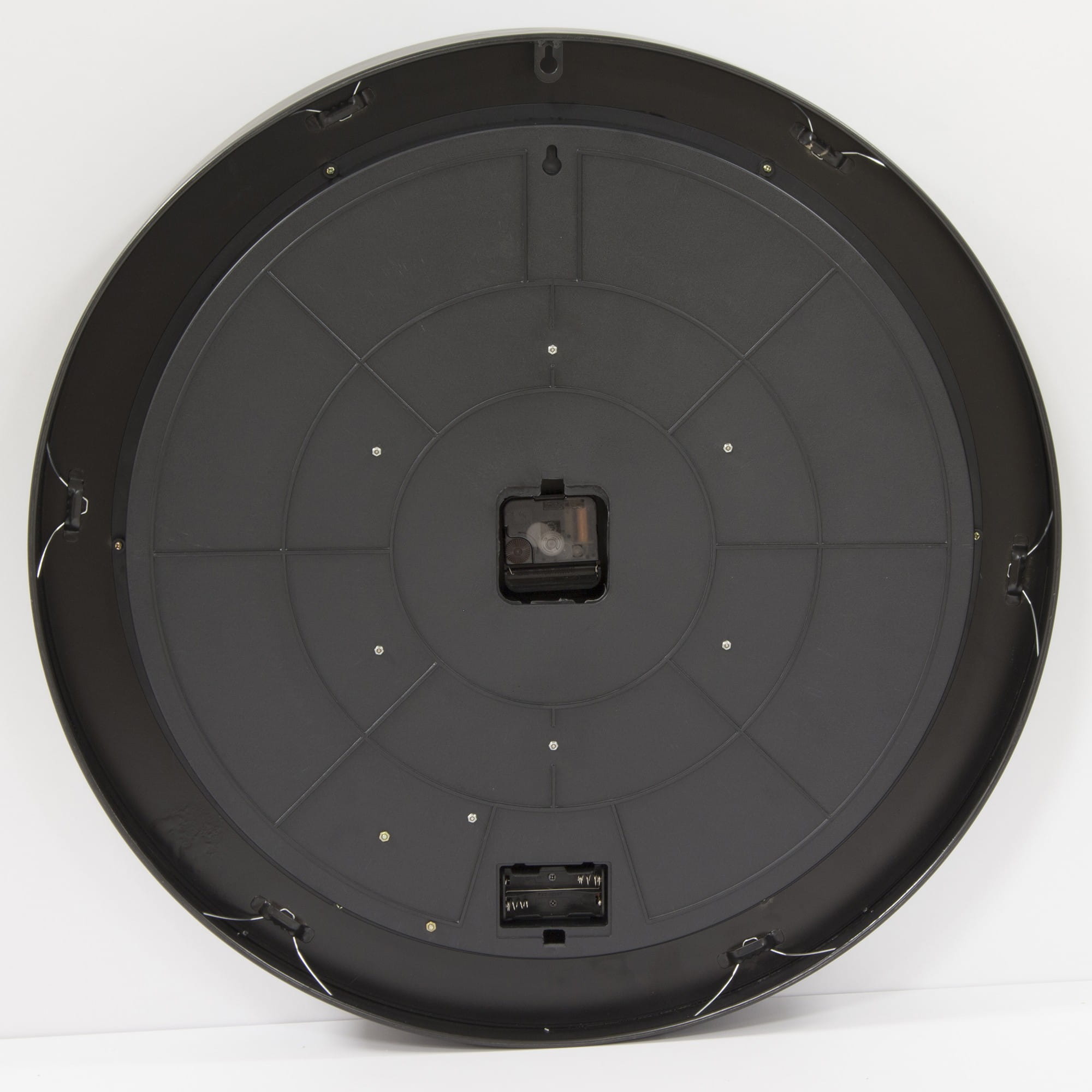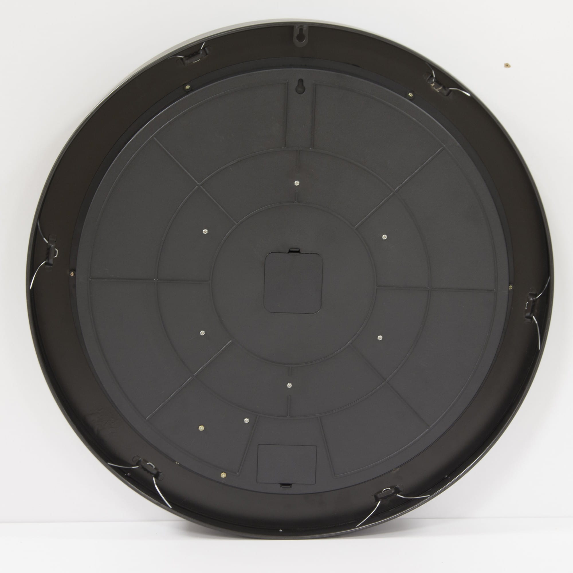 Wykonany z metalu wielokolorowy. Czarno-srebrny wskazówki na tarczy. Obudowa jest masywna, gruba, wykończona czarną obwódką.