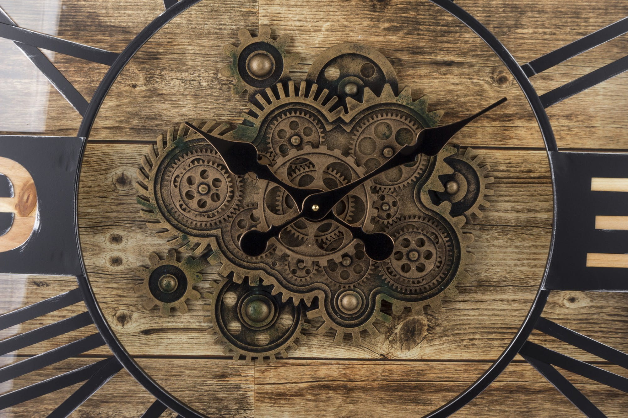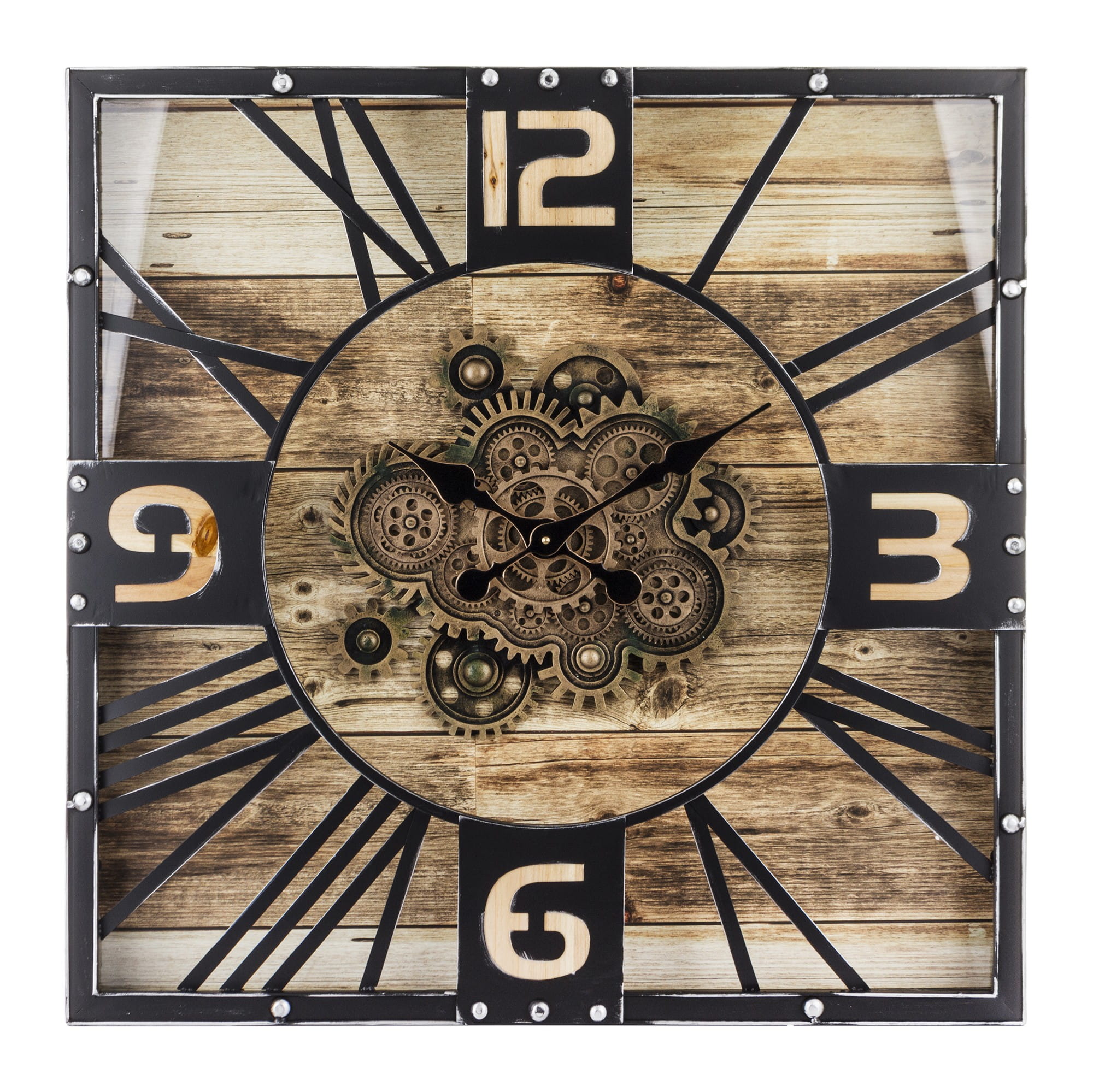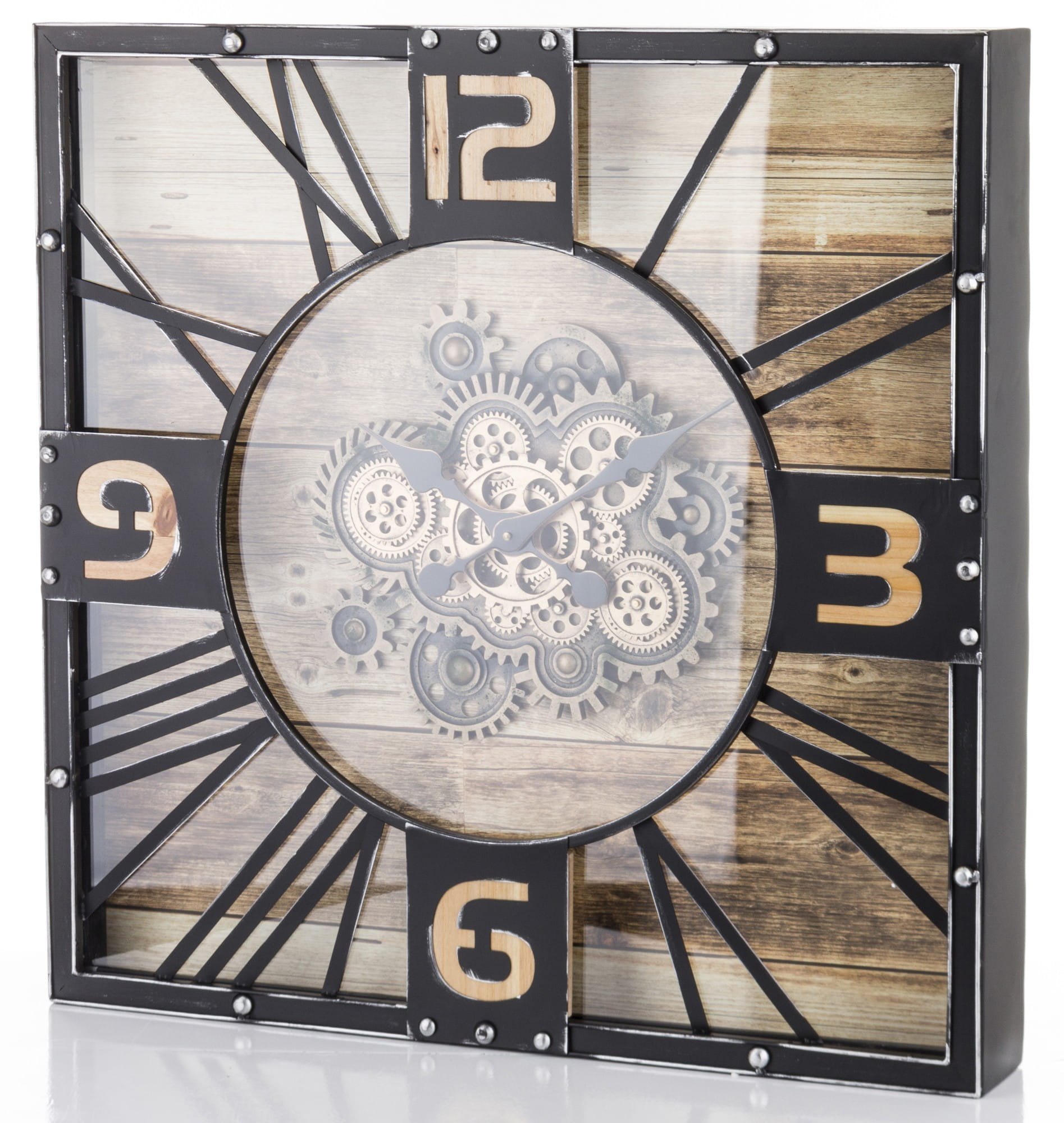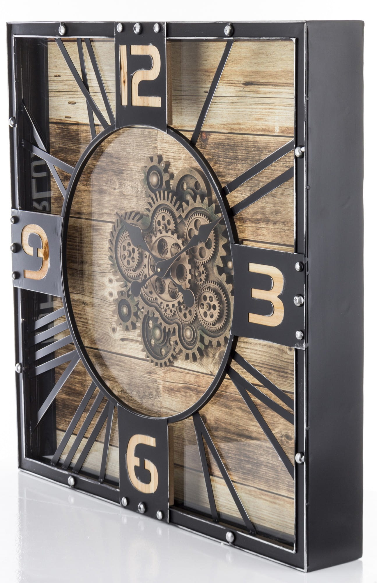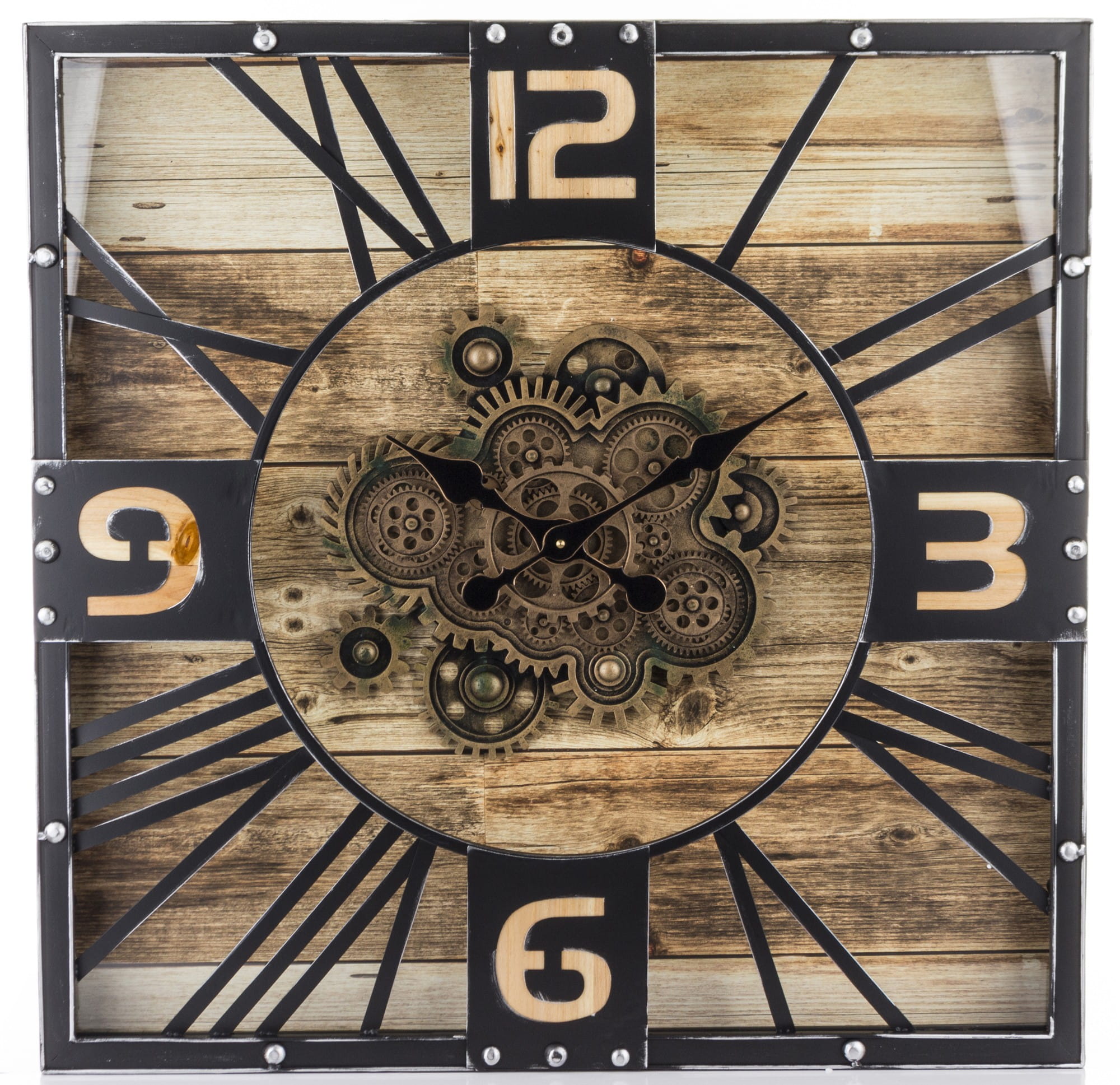Wykonany z tworzywa sztucznego i metalu w kolorze czarnym, brązowym. Czarne wskazówki na tarczy. Zegar doskonale ozdabia każde pomieszczenie nadając mu wyjątkowego charakteru.