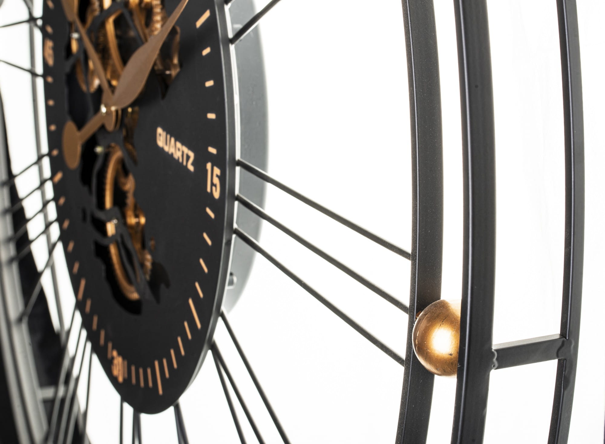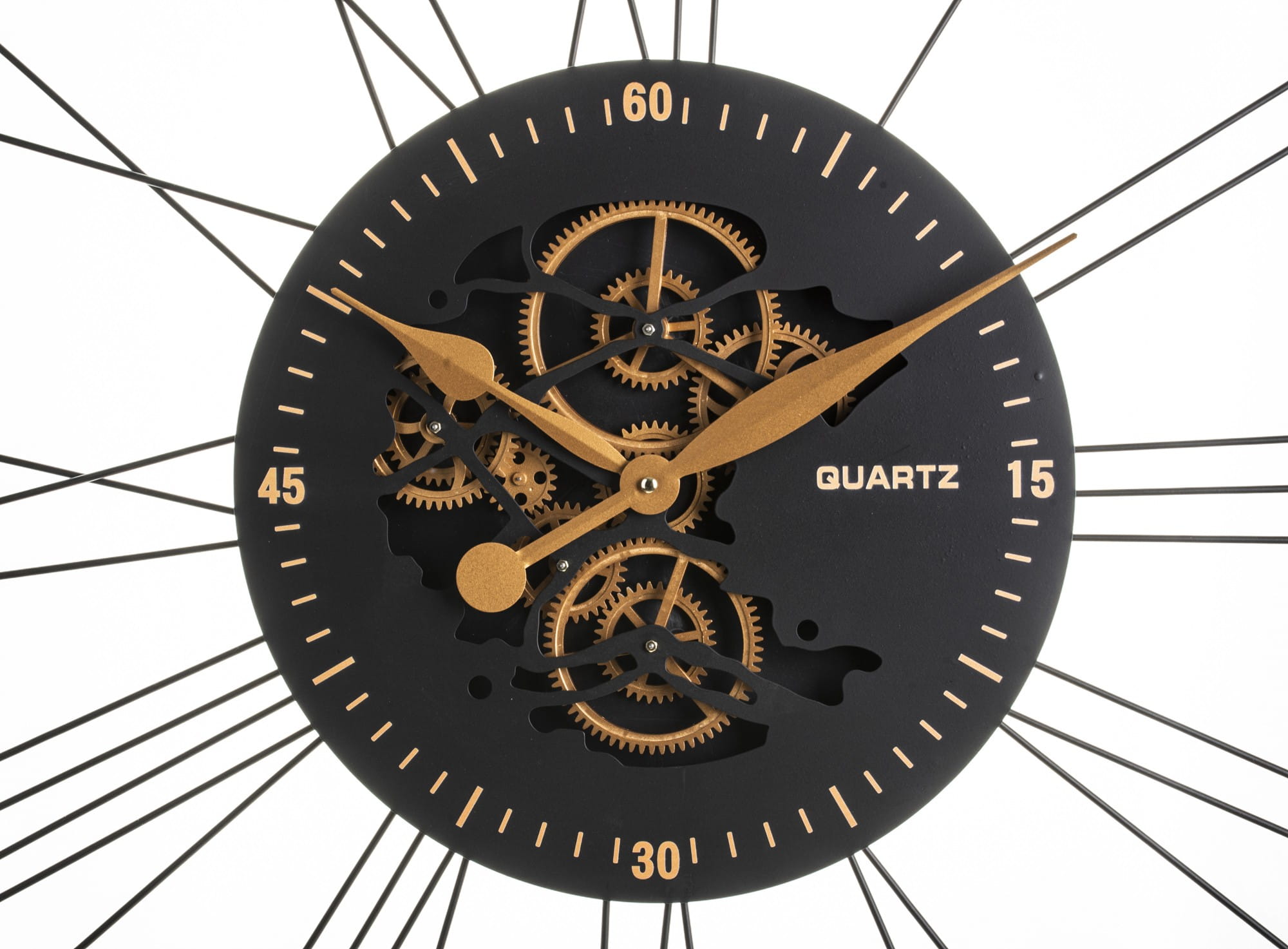 Wykonany z metalu w kolorze czarnym. Złote wskazówki na tarczy. Zegar doskonale ozdabia każde pomieszczenie nadając mu wyjątkowego charakteru.