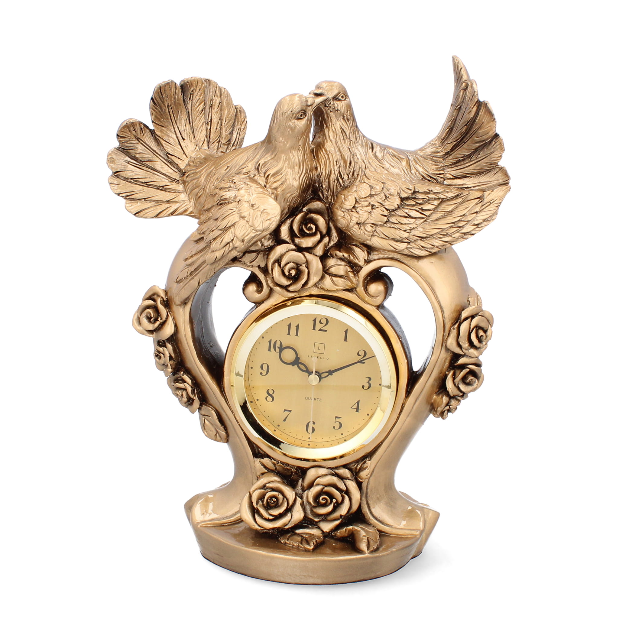Livello złoty zegar kominkowy 26×15×32 cm – dekoracyjny zegar z gołębiami w stylu glamour