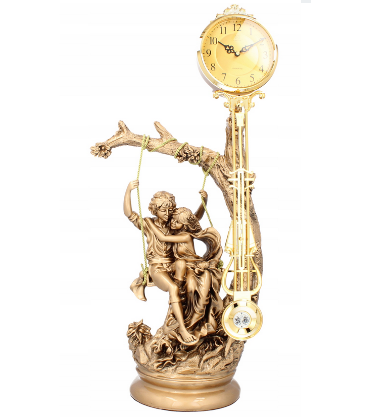 Zegar kominkowy złoty Livello Para na Huśtawce Zakochani złota dekoracja