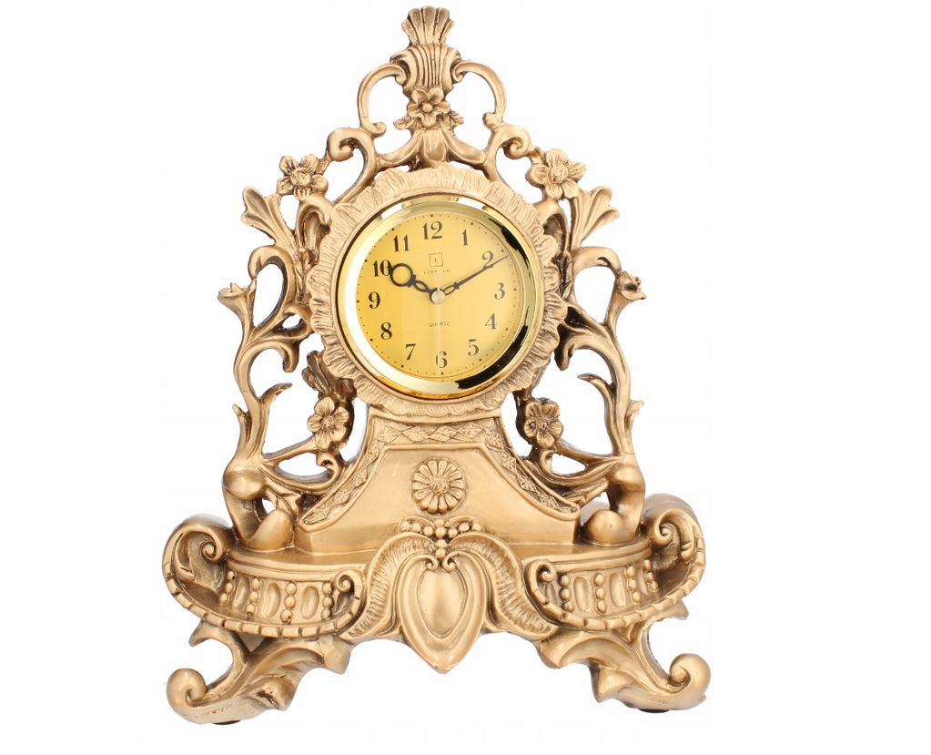 Zegar kominkowy złoty Livello zdobiony luksusowa złota dekoracja retro