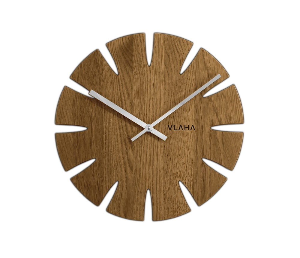 Zegar stworzony w pracowni czeskiej firmy VLAHA i tam ręcznie wyprodukowany. Przykuwa uwagę swoim nowatorskim wzornictwem i klasyczną kolorystyką. Prezentowany model świetnie sprawdzi się jako funkcjonalny czasomierz i ozdoba we wnętrzach urządzonych w stylu nowoczesnym i mieszanym. Zegar do zawieszenia w salonie, pokoju, ale także w jadalni czy kuchni.