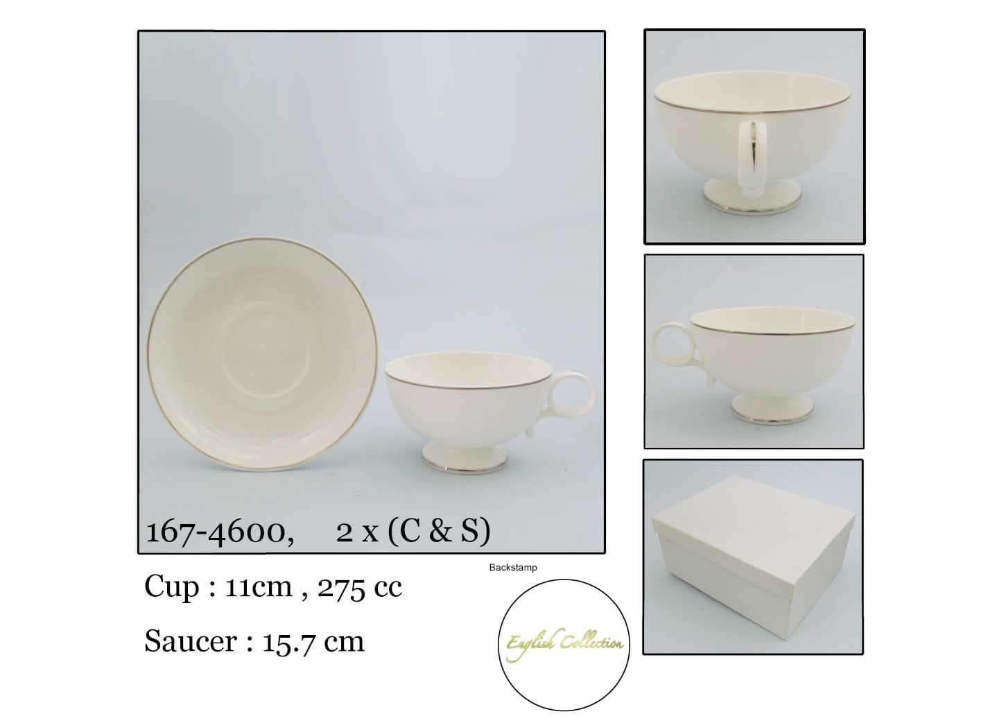 Elegancki zestaw filiżanek 275 ml z kolekcji English Collection – ponadczasowa klasyka i wyjątkowy styl w Twoim domu
